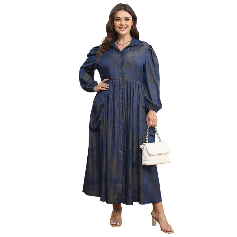 Plus Size Women Button Collared Long Sleeve Maxi Dress