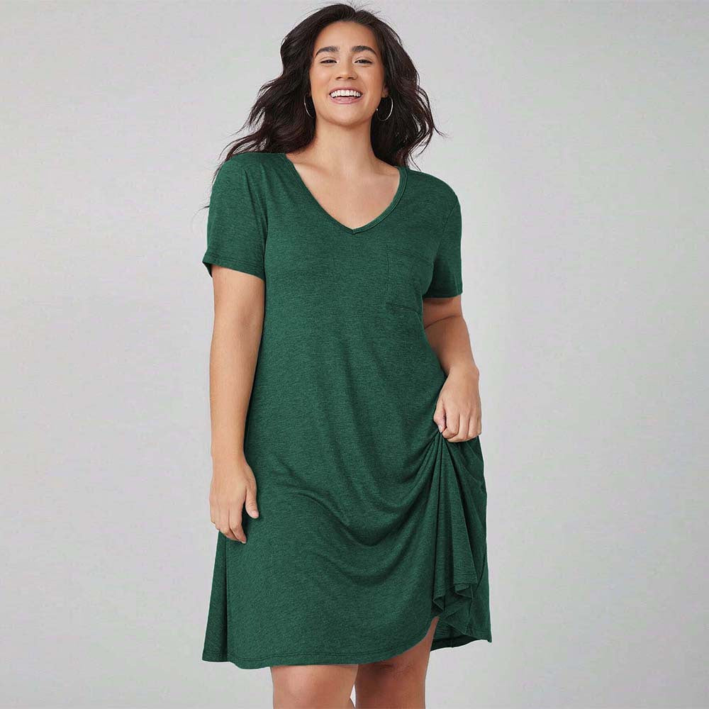 Plus Size Women Casual Simple Dress Summer All Matching Graceful Mid Length Dress