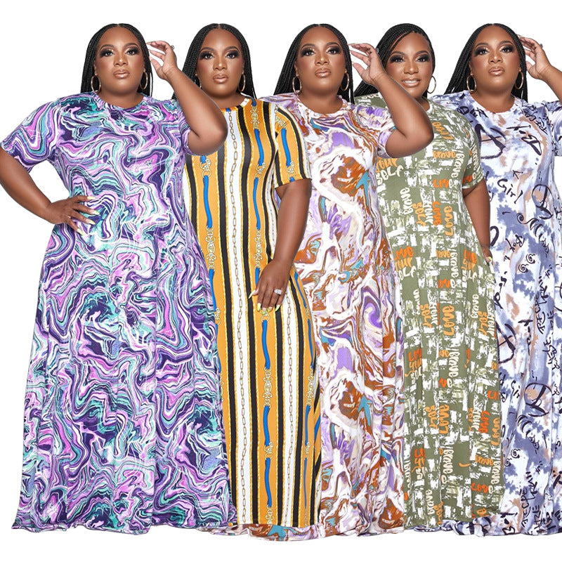 Plus Size Women Clothes Abstract Printing Casual Loose Dress