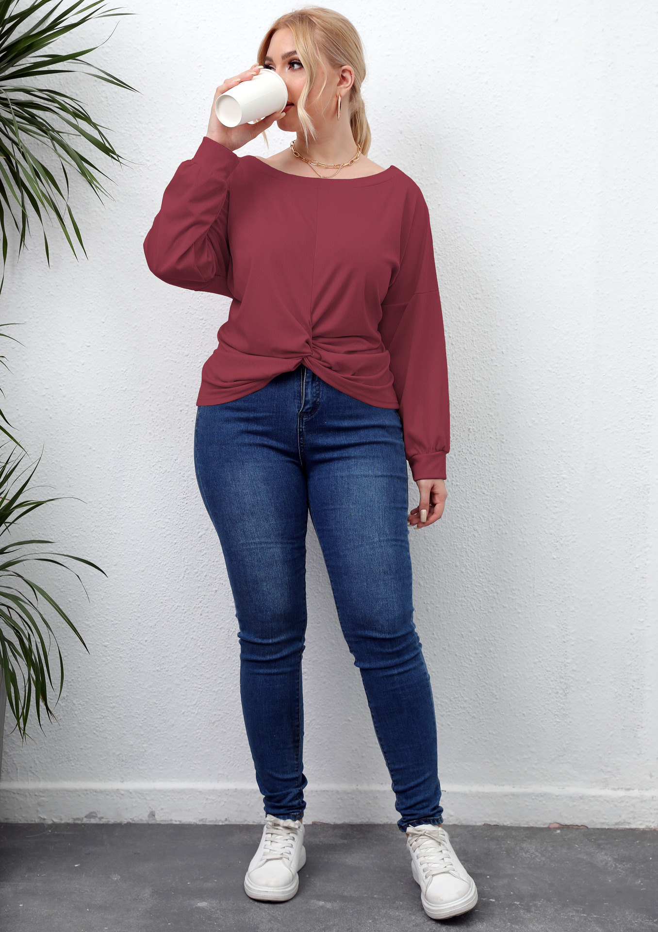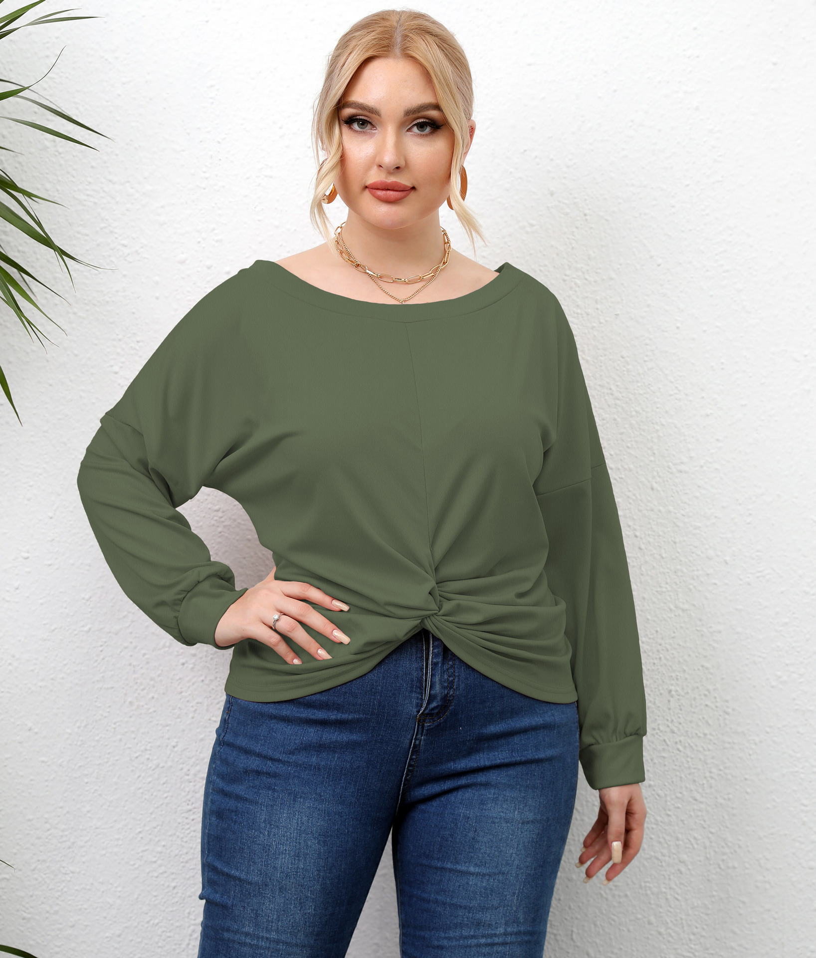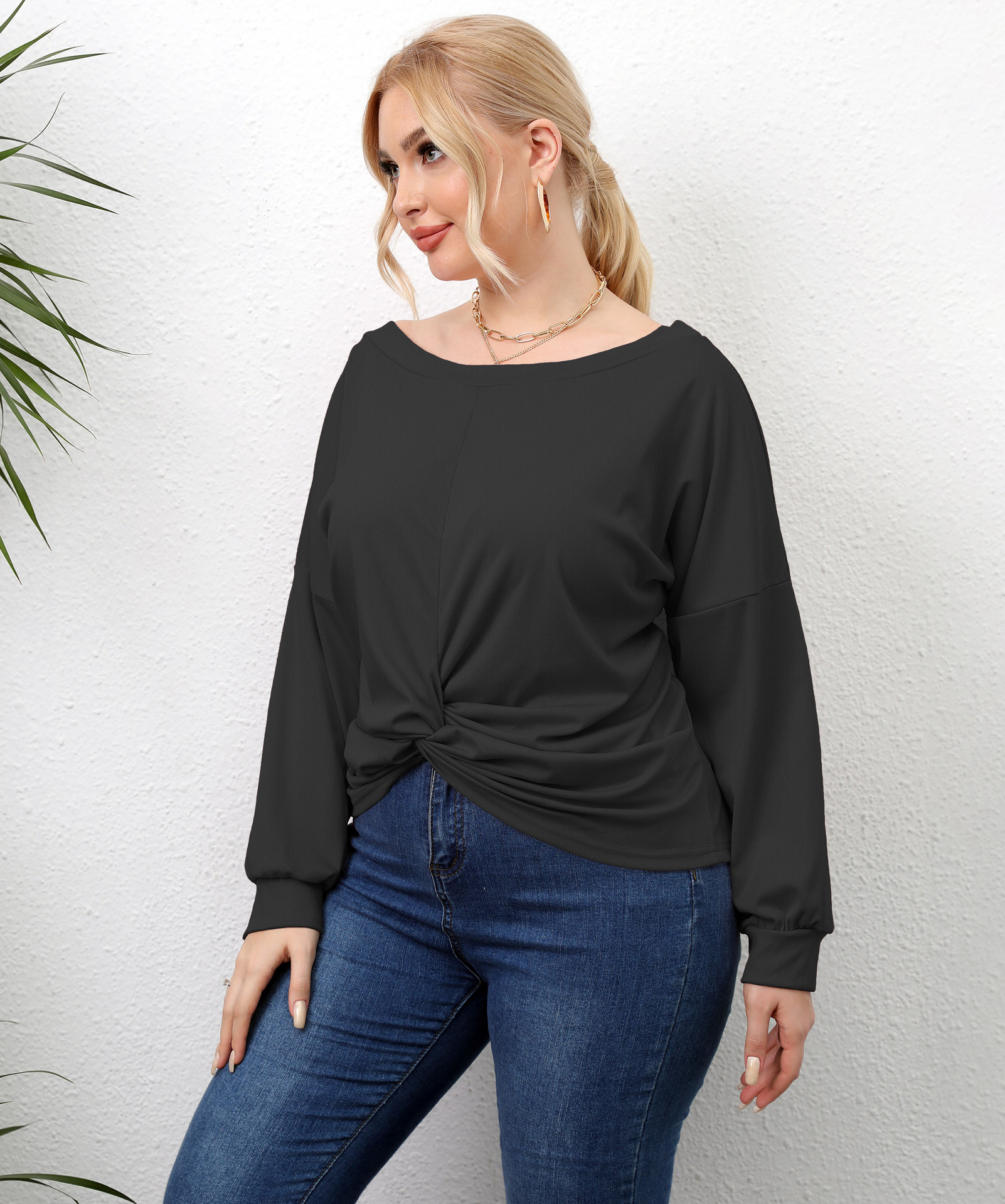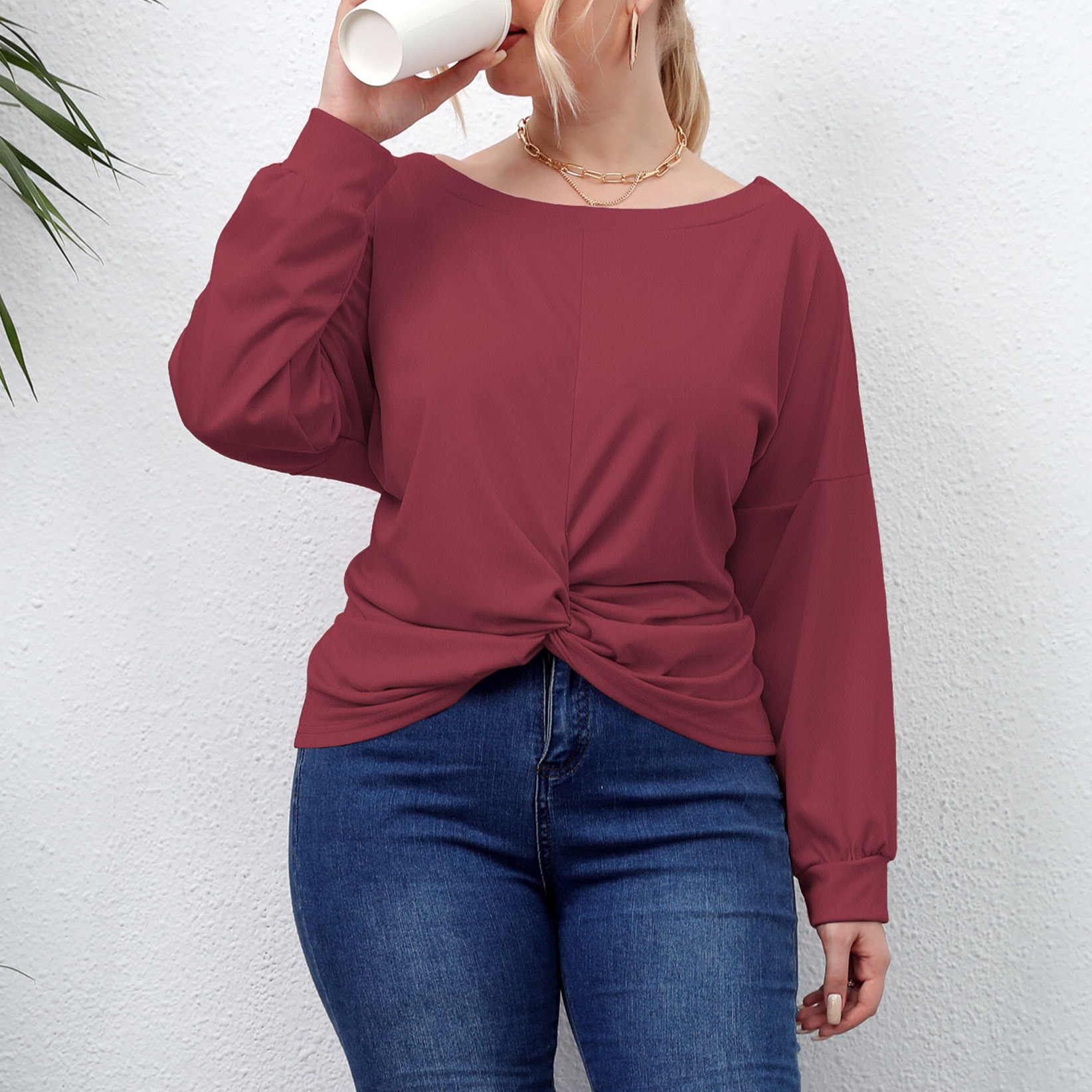Plus Size Women Clothes Autumn Long Sleeve Solid Color Irregular Asymmetric Criss Cross Women Casual T-shirt