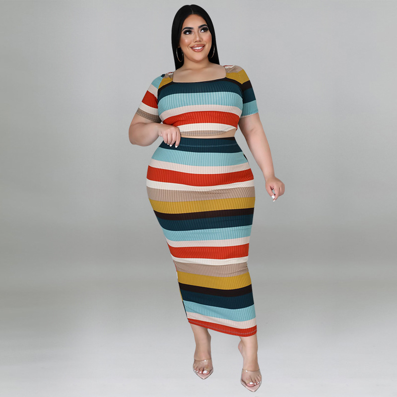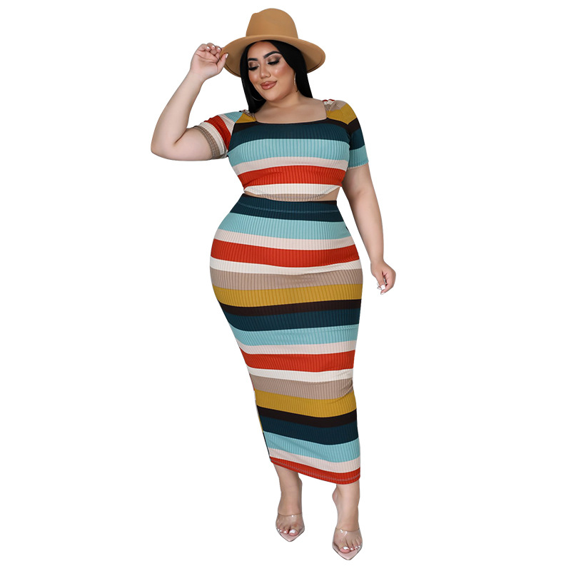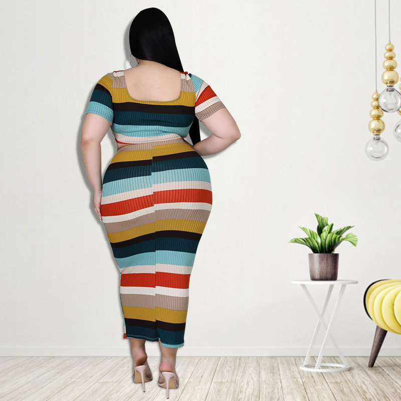 Plus Size Women Clothes Autumn New Horizontal Two-Piece Dress New