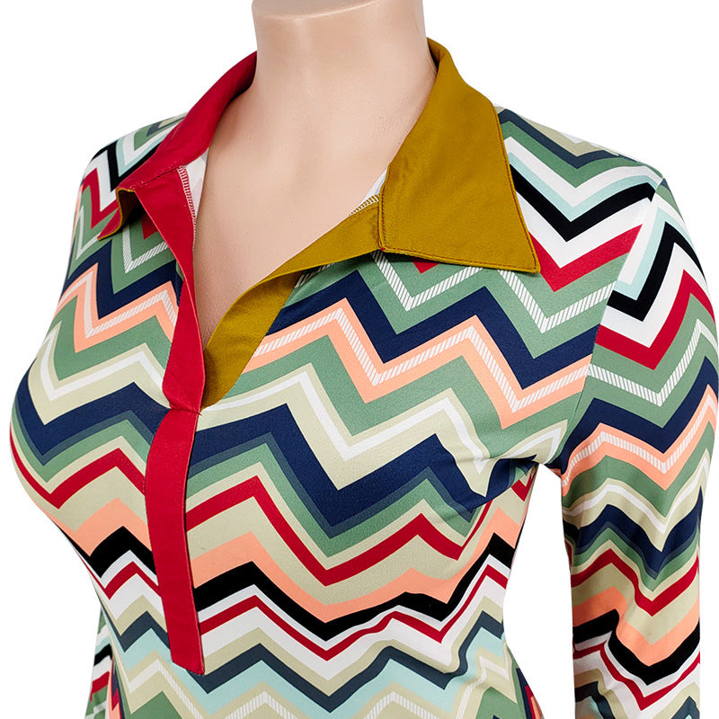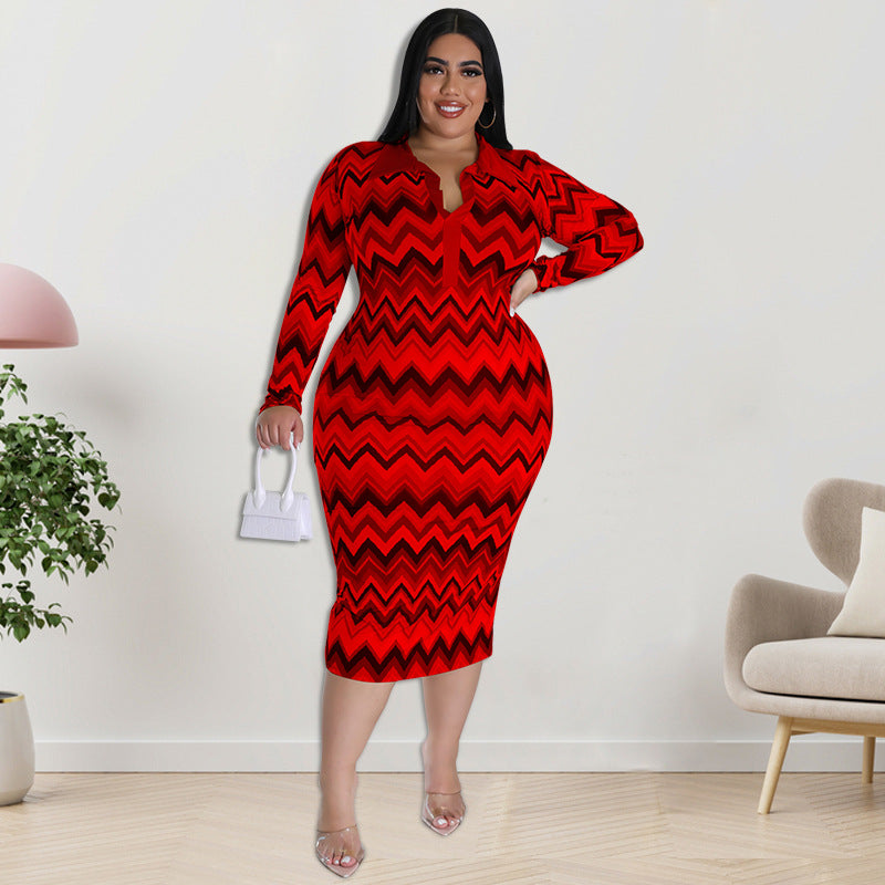 Plus Size Women Clothes Long Sleeve Collar Printed Open Tube Dress Source