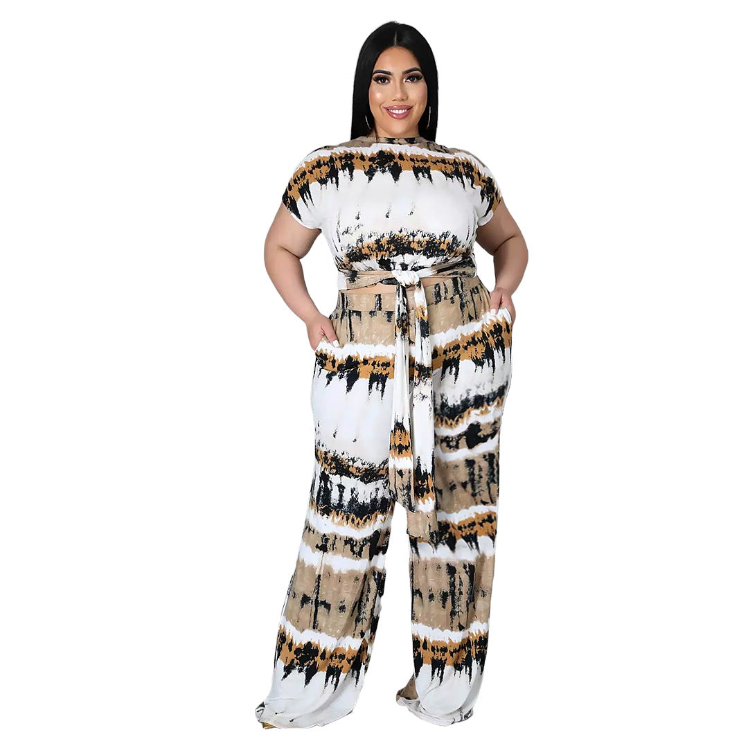 Plus Size Women Clothes Printed Lace up Double Pocket Comfortable Wide Leg Pants Two-Piece Set