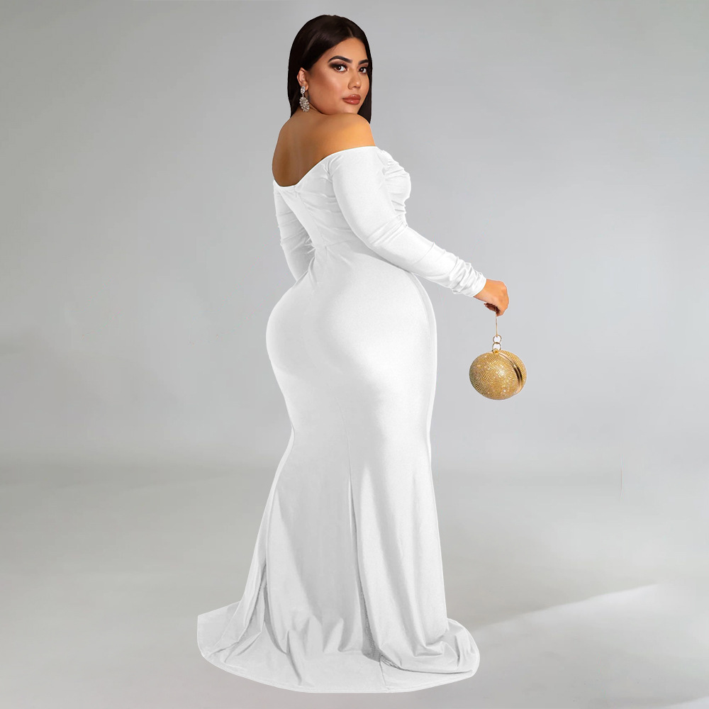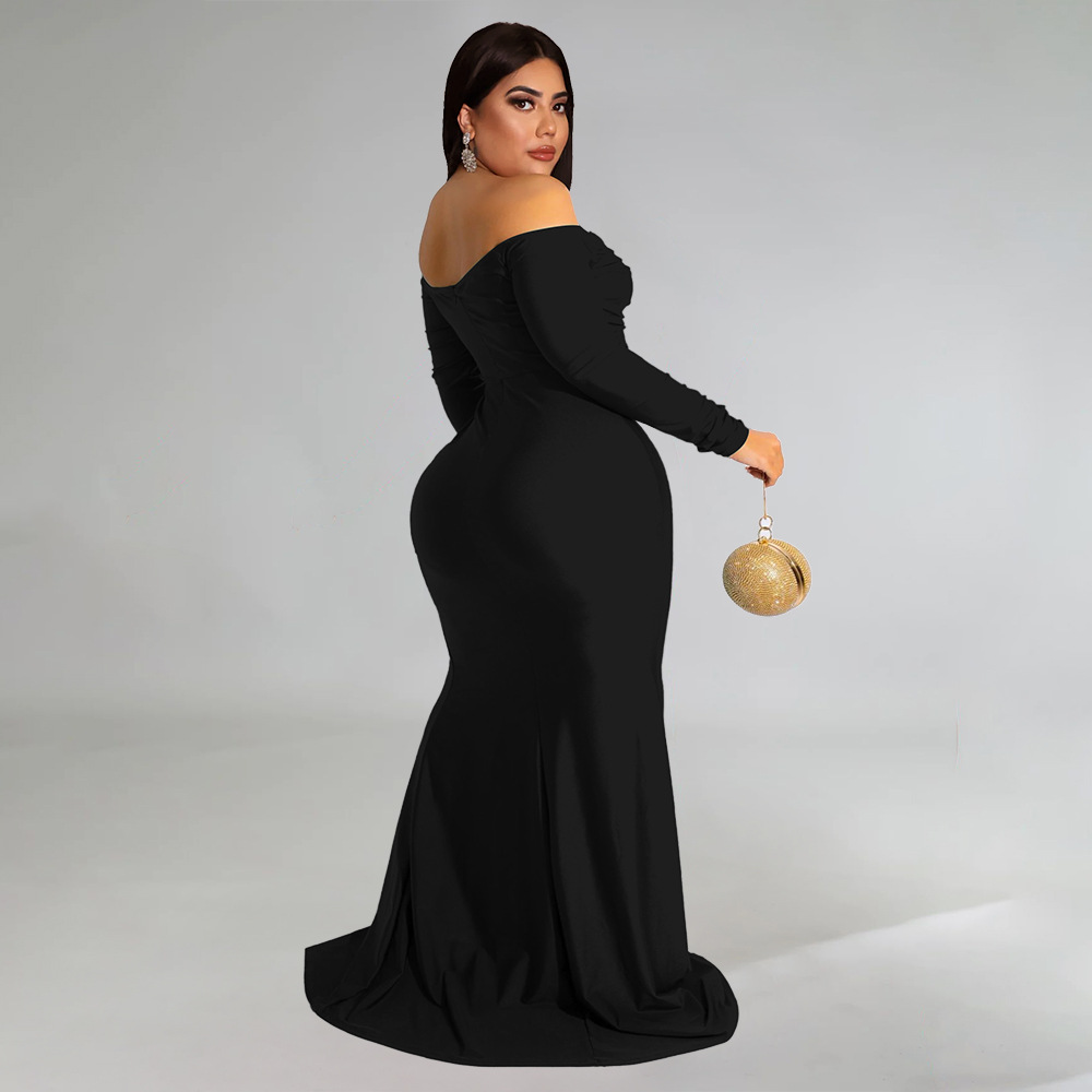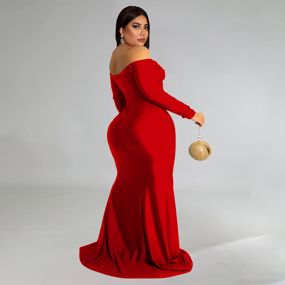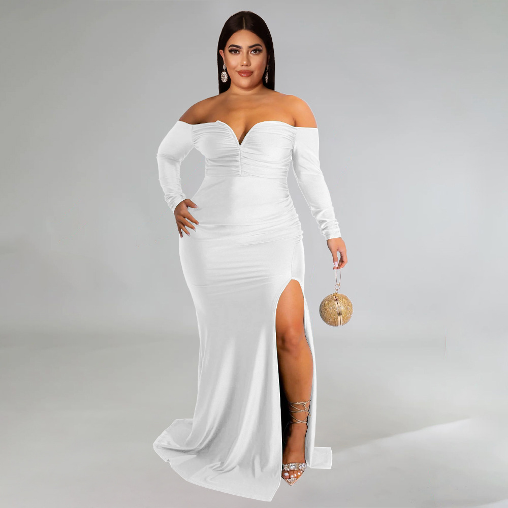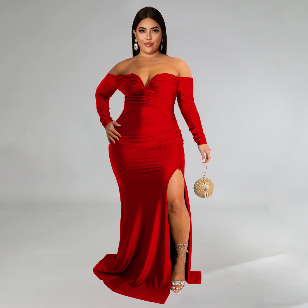 Plus Size Women Clothes Sexy Dress Nightclub V neck Formal Dress Pure Color Split Maxi Dress Autumn Winter High Split