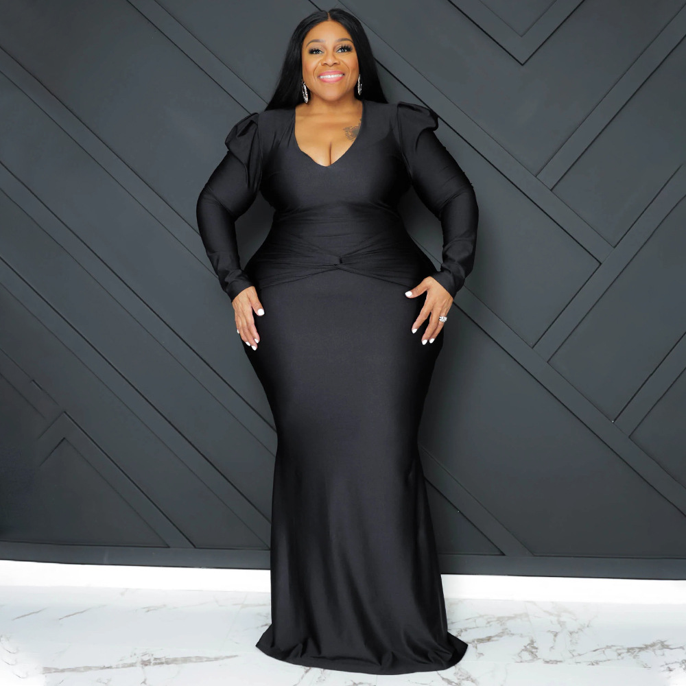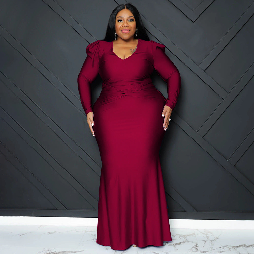 Plus Size Women Clothes Sexy Dress Nightclub V neck Formal Dress Solid Color Maxi Dress Autumn Winter Long Sleeve