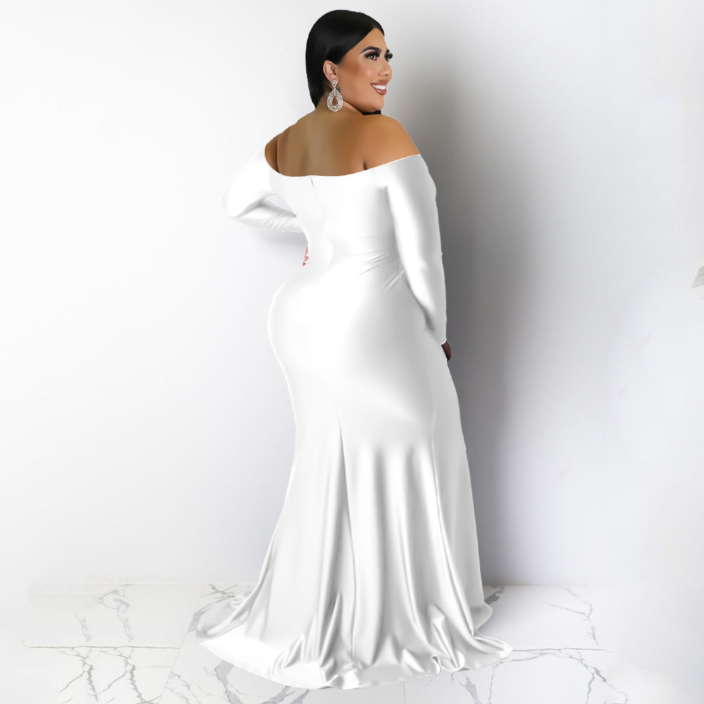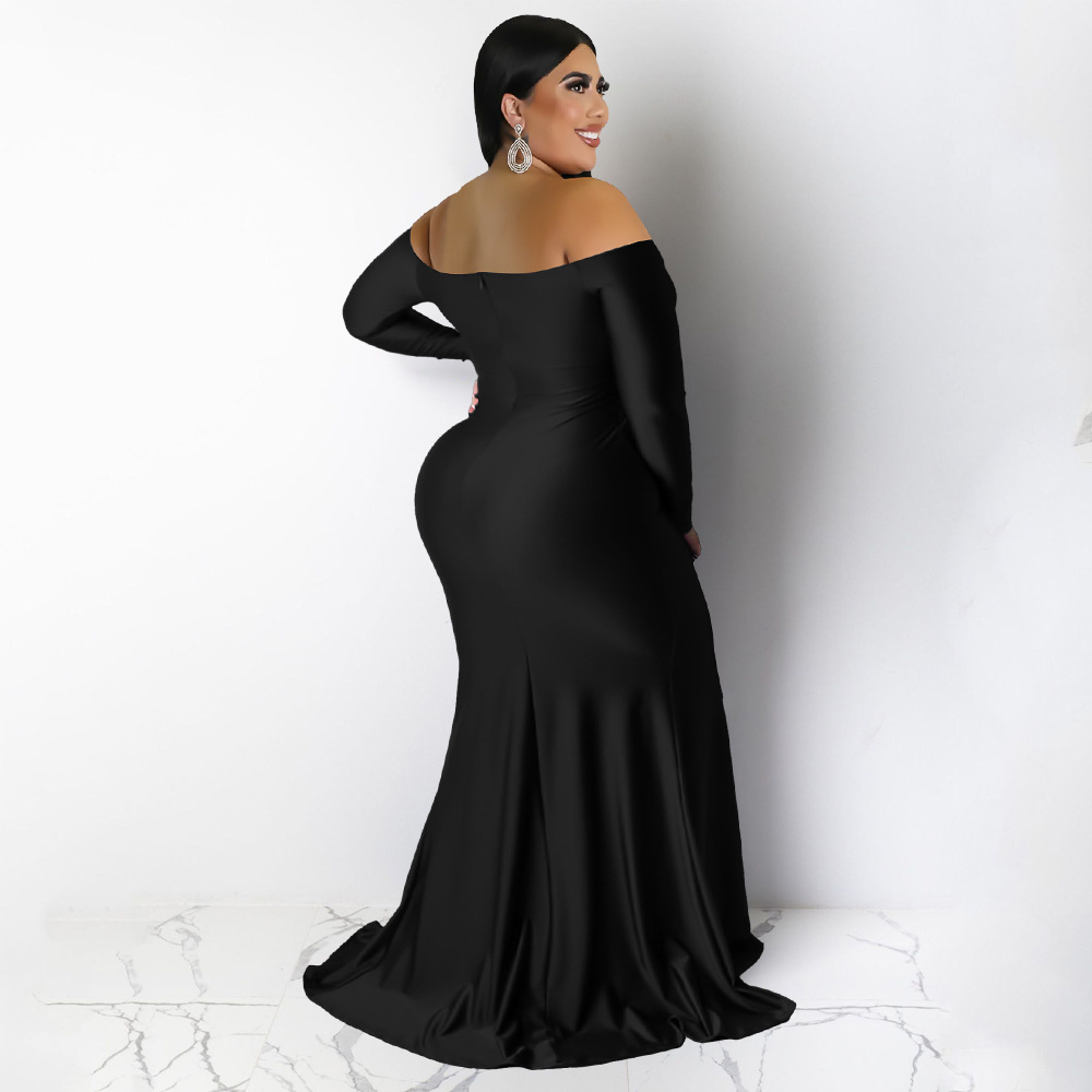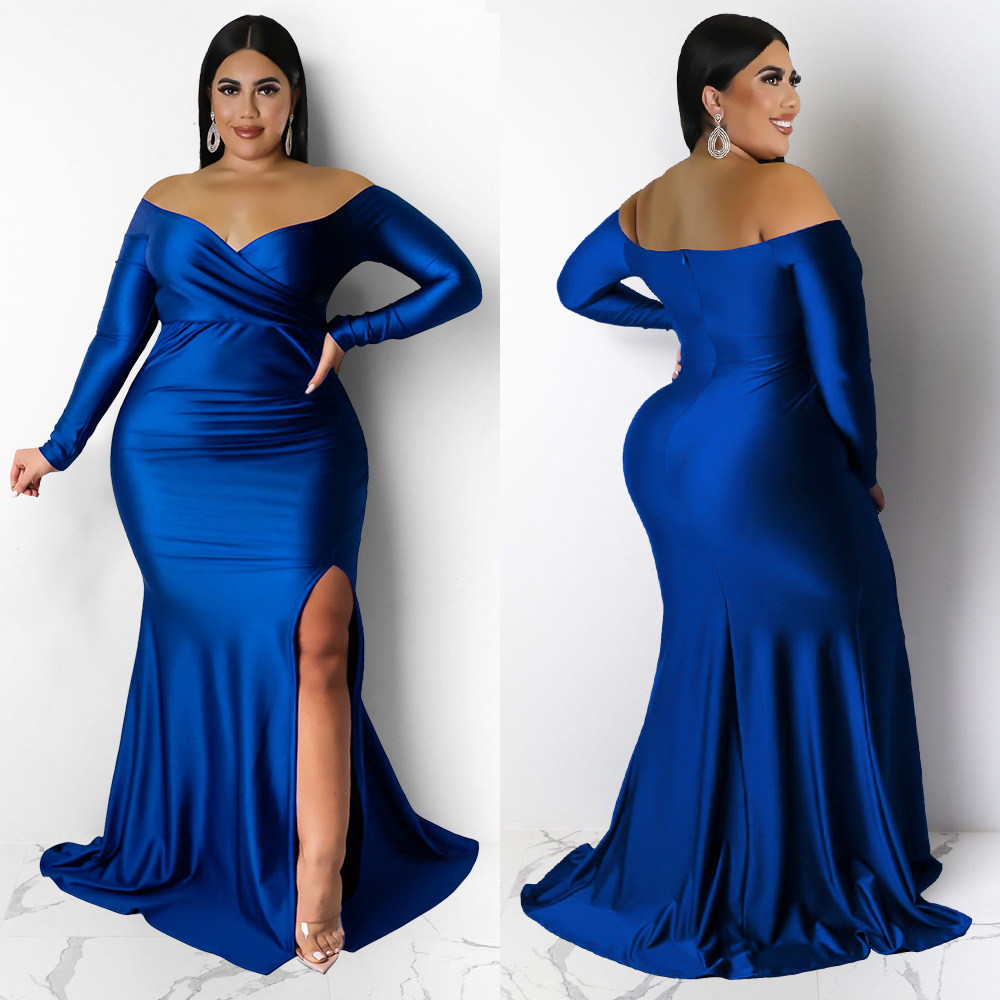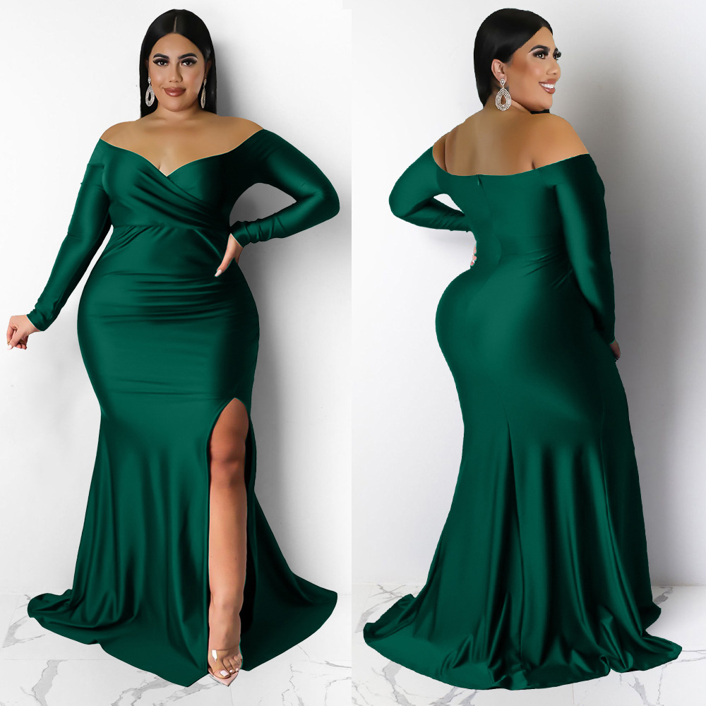 Plus Size Women Clothes Sexy Dress Nightclub V neck Formal Dress Solid Color Split Maxi Dress Autumn Winter Women