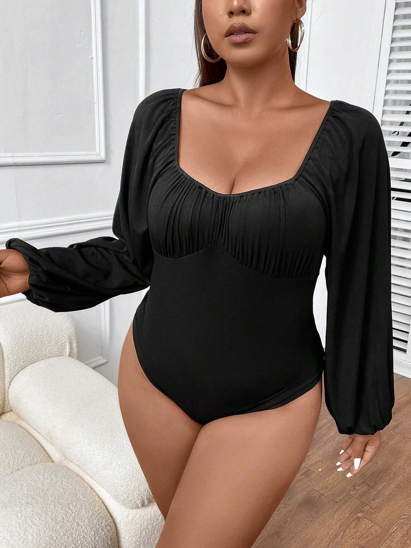 Plus Size Women Clothes Slim Fit Slimming Puff Sleeve Long Sleeve Sexy Jumpsuit