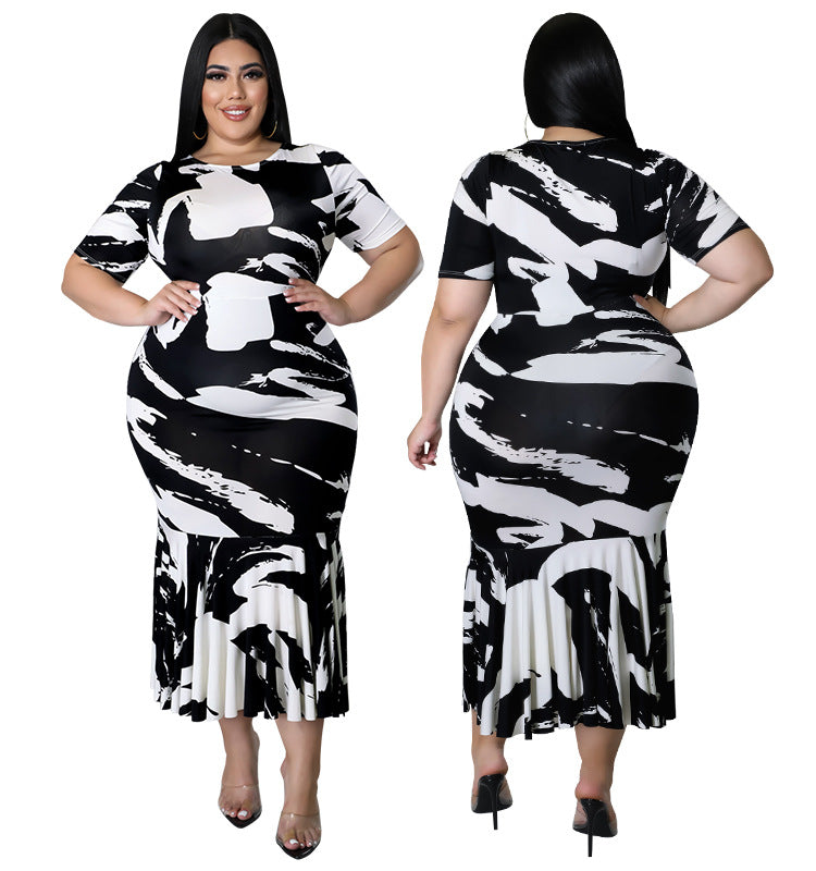 Plus Size Women Clothes Spring round Neck Short Sleeve Dress