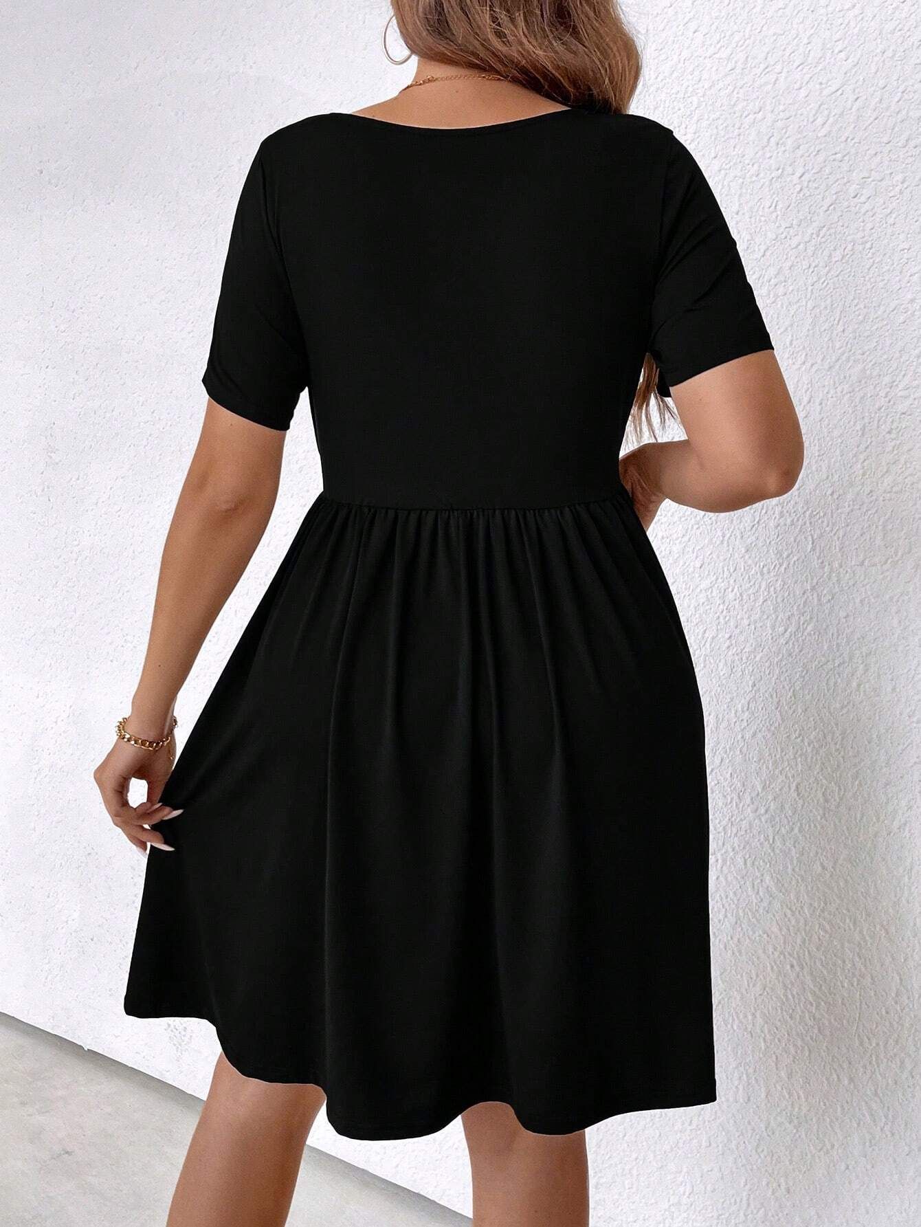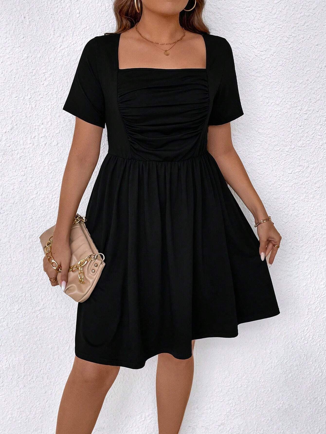 plus Size Women Clothes Spring Summer Shein Square Neck Cinched Short Sleeve Dress