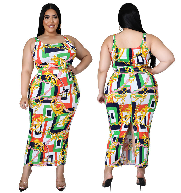 Plus Size Women Clothes Spring Vest with Half Waist Skirt Set