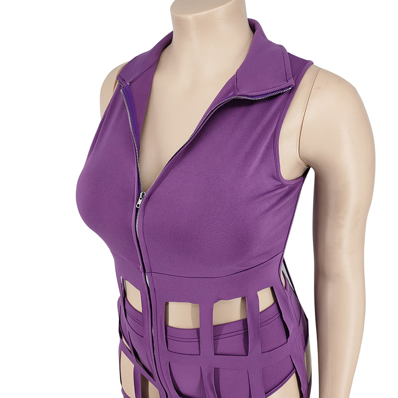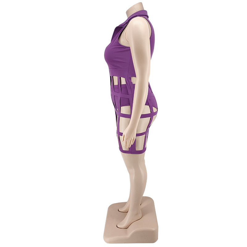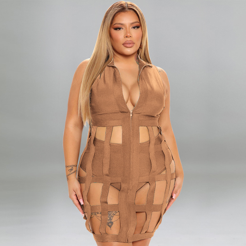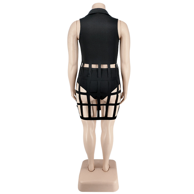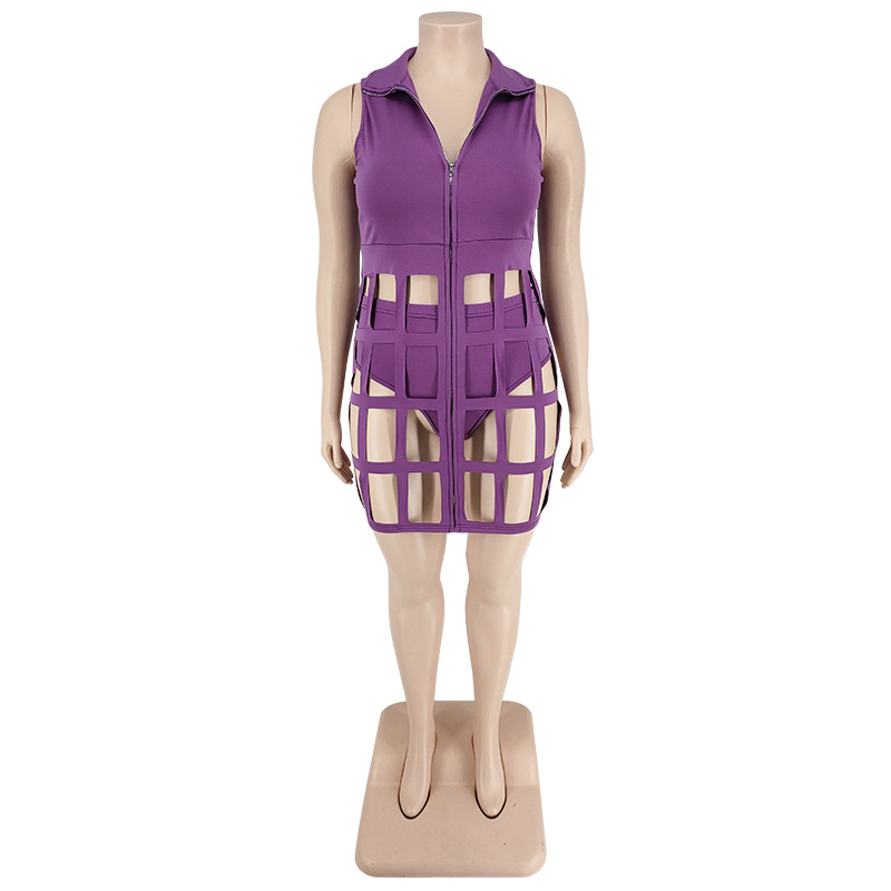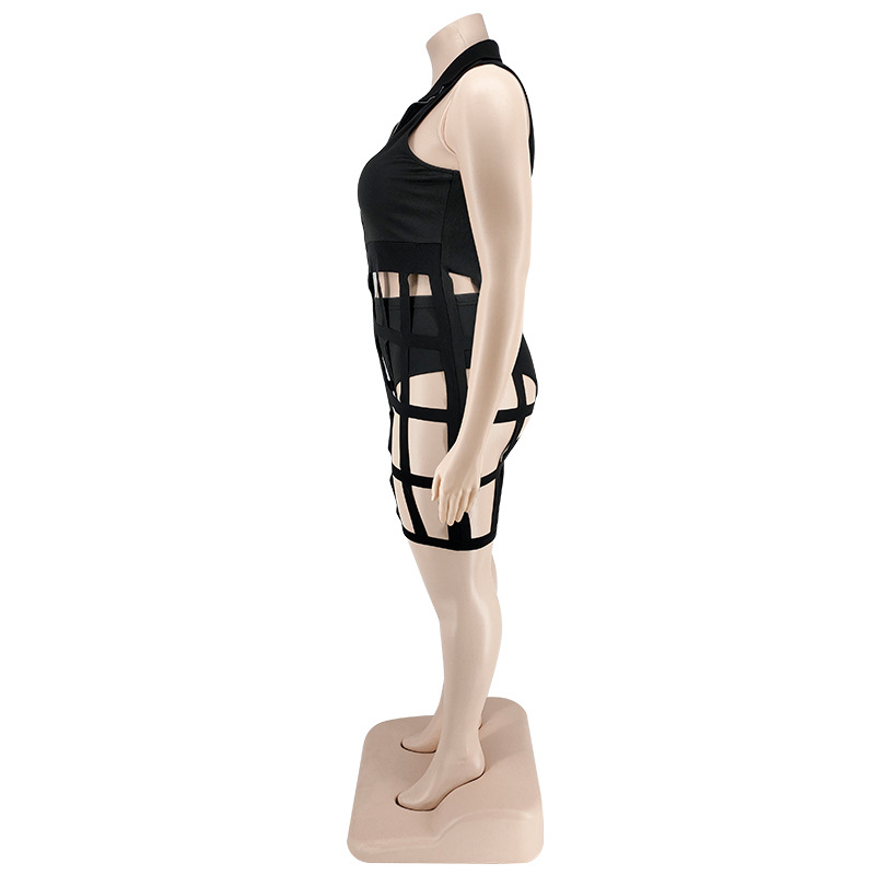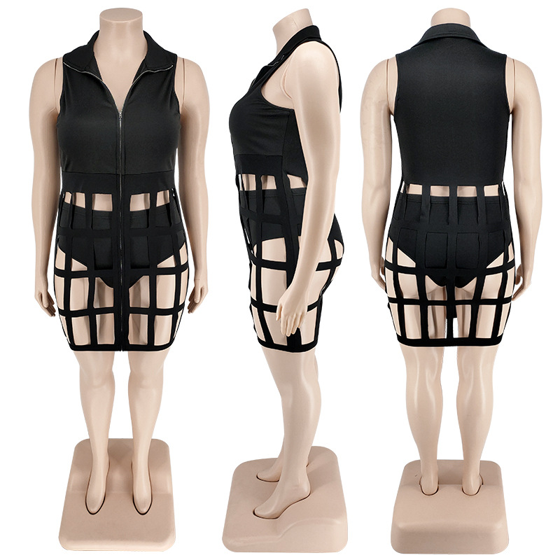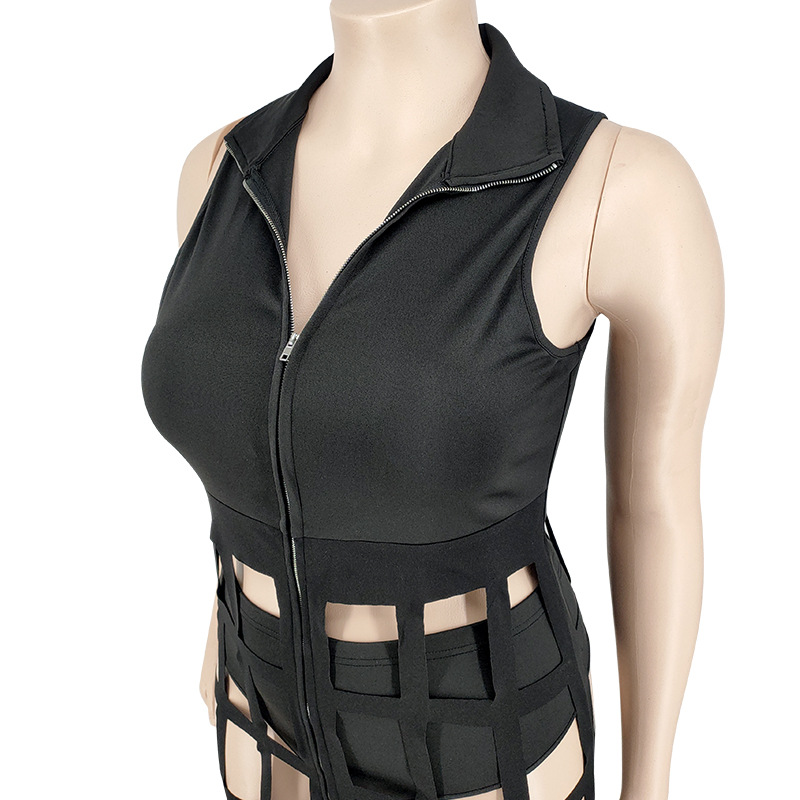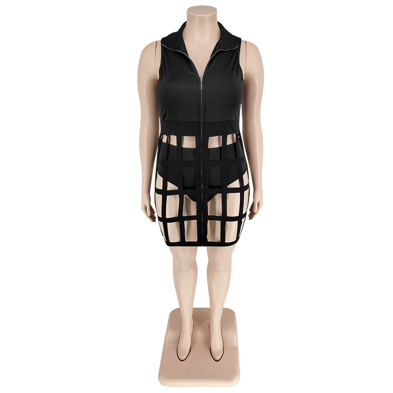 Plus Size Women Clothes Summer Ripped Collar Vest Dress
