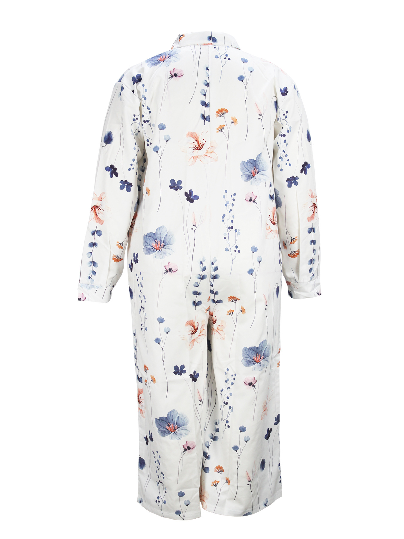 Plus Size Women Clothes Summer Women Wear Loose Printed Long Long Sleeve Jumpsuit