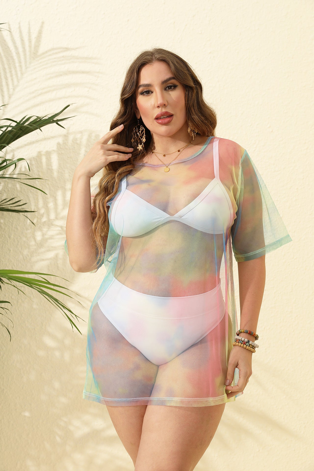 Plus Size Women Clothes Tie Dyed Printed Sexy Sheer Mesh Beach Dress