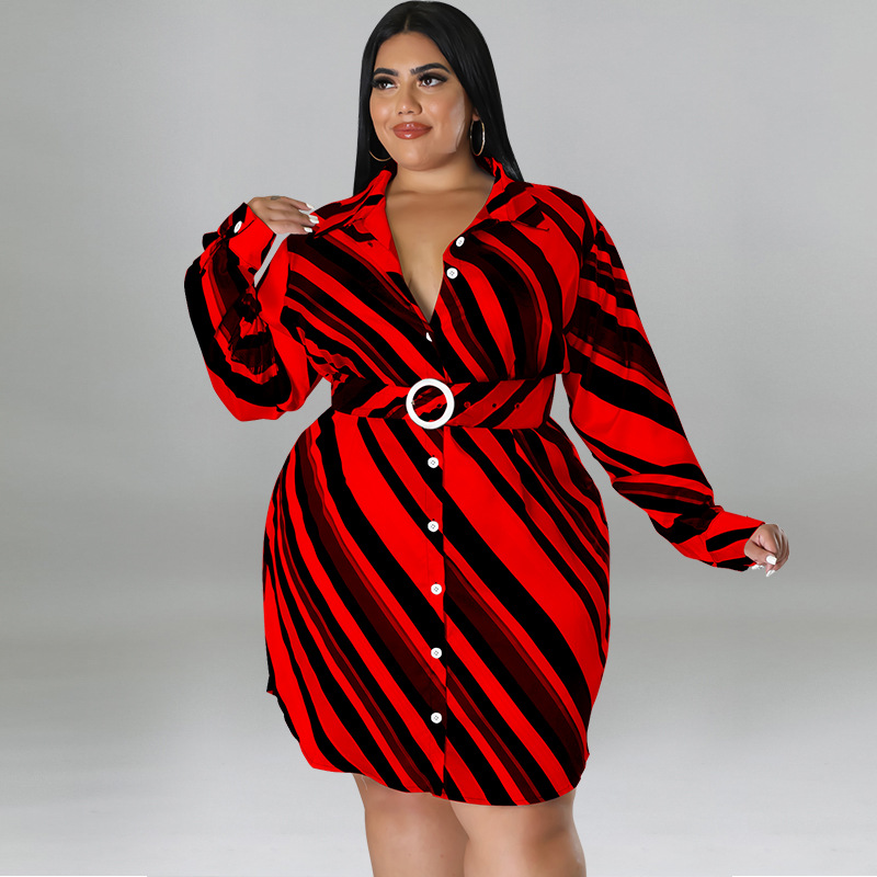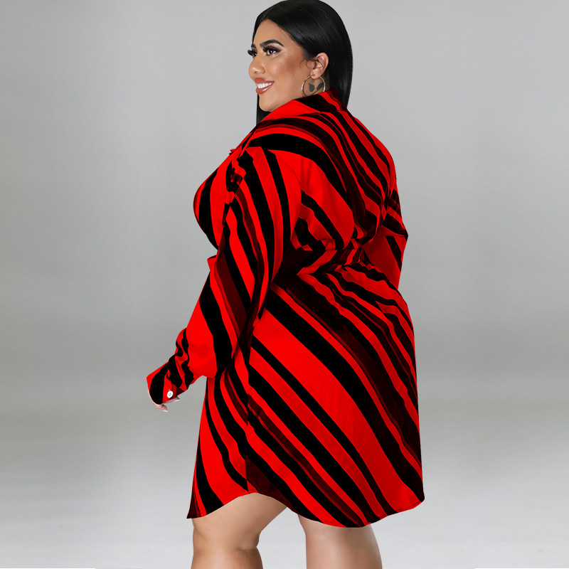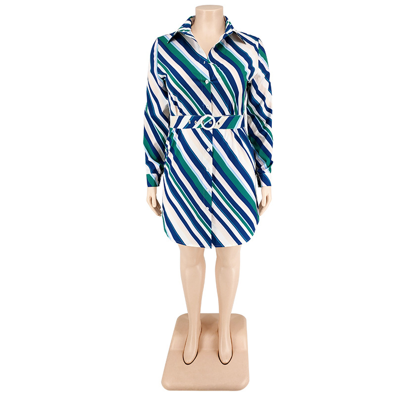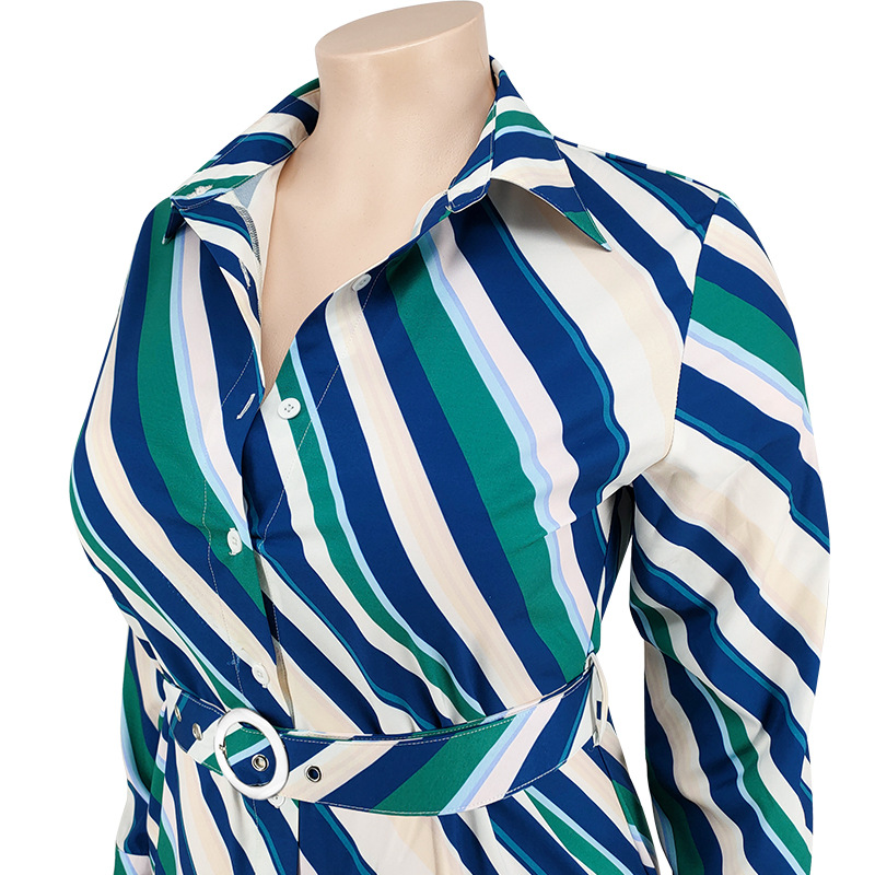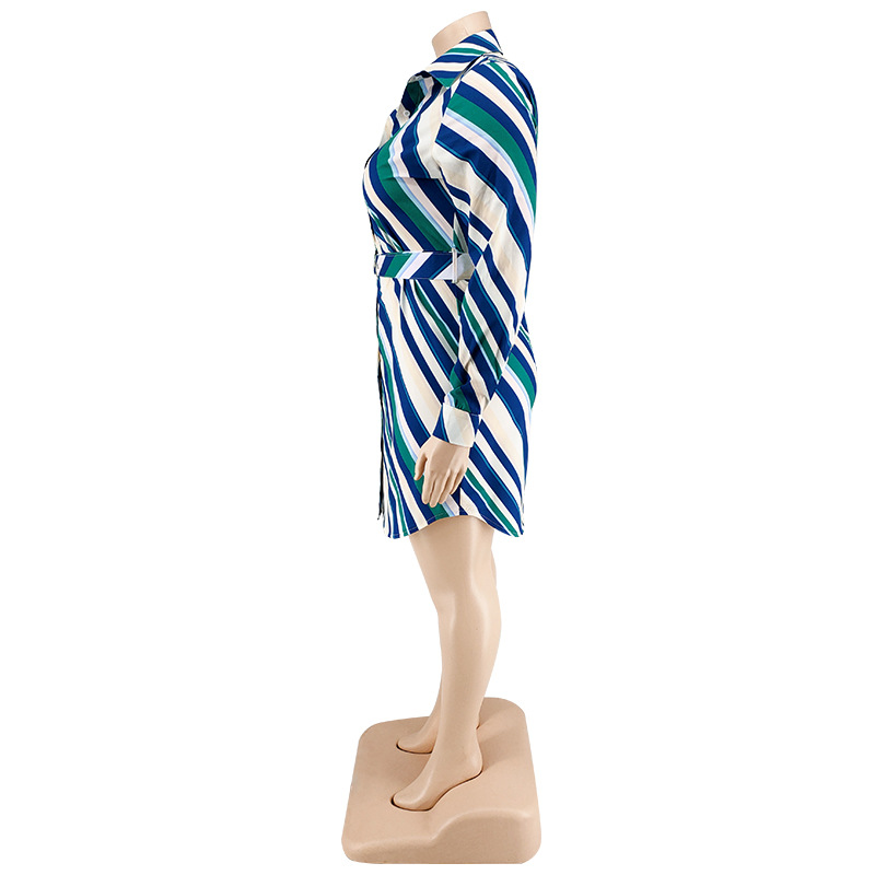 Plus Size Women Clothing Autumn Long Sleeve Diagonal Striped Shirt