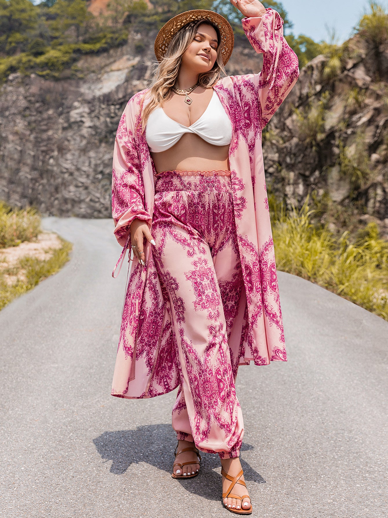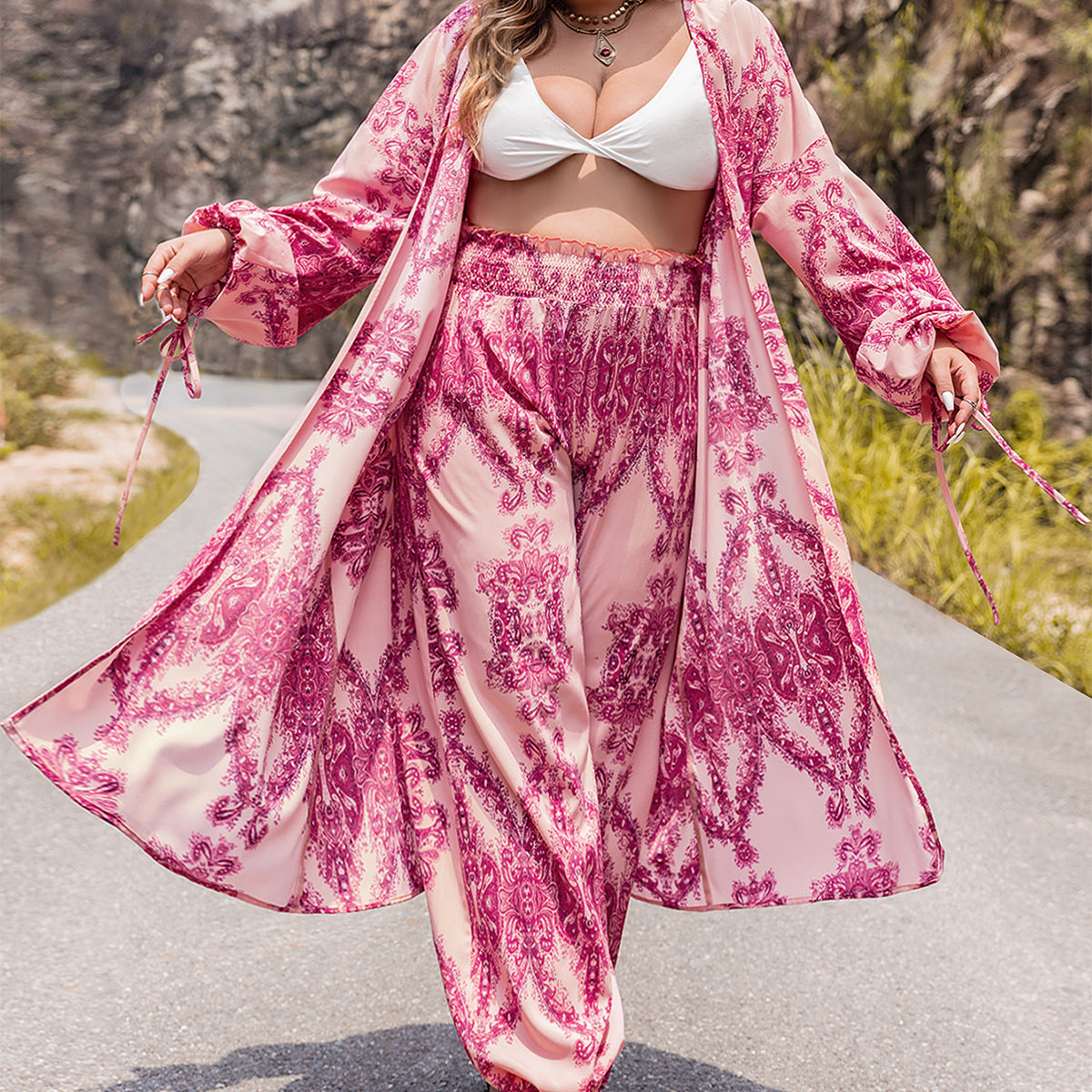 Plus Size Women Clothing Autumn Winter Printing Suit Top Pants Two Piece Set