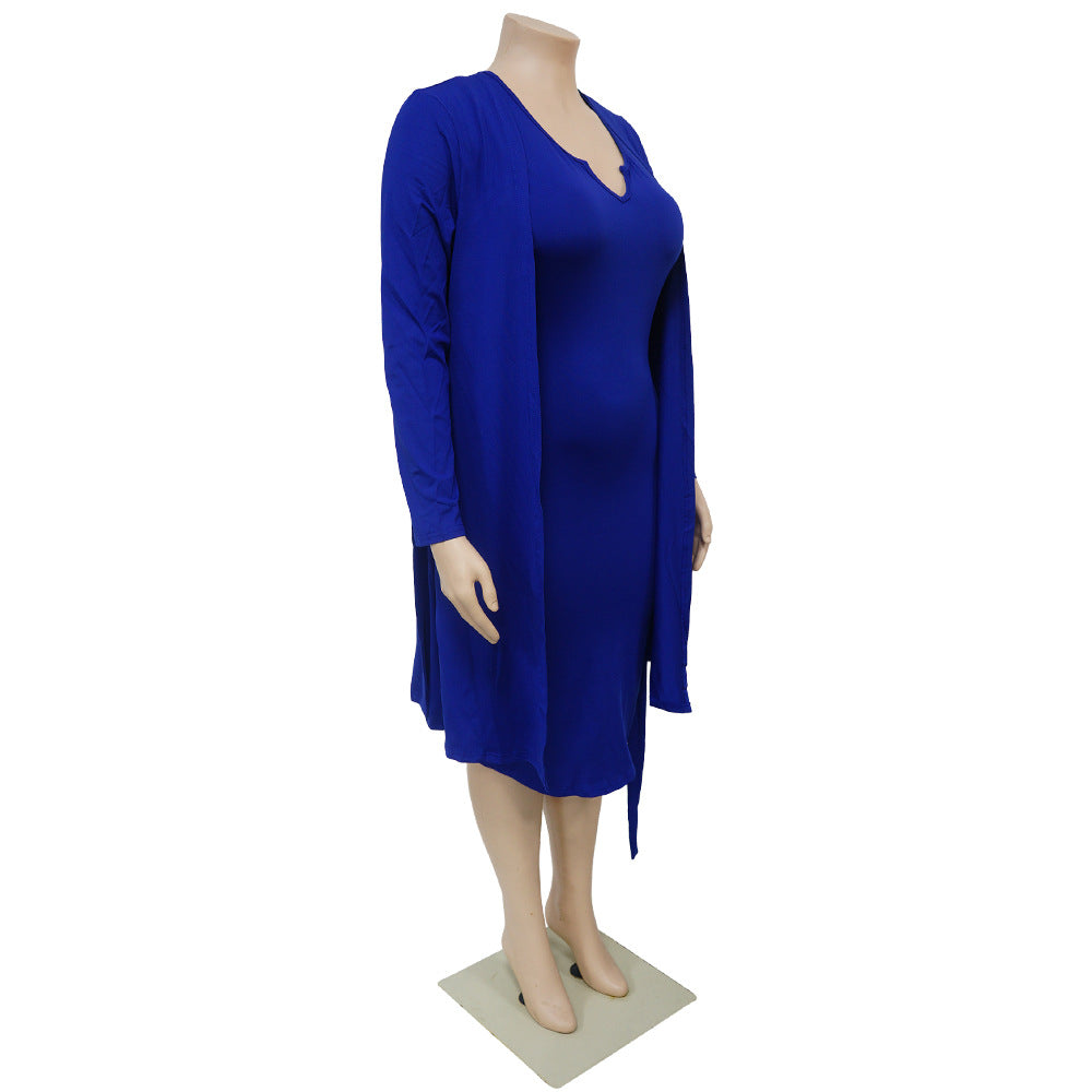 Plus Size Women Clothing Casual Long Sleeve Tube Top Dress Two Piece Set