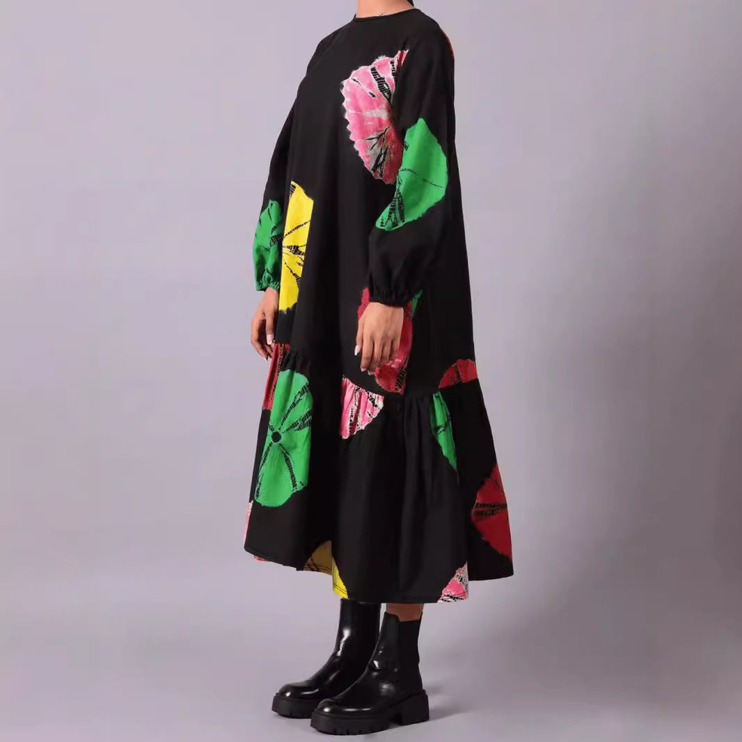 Plus Size Women Clothing Loose Straight Print Dress