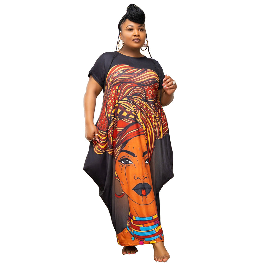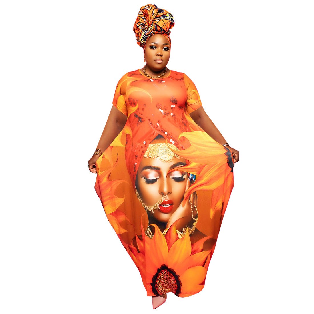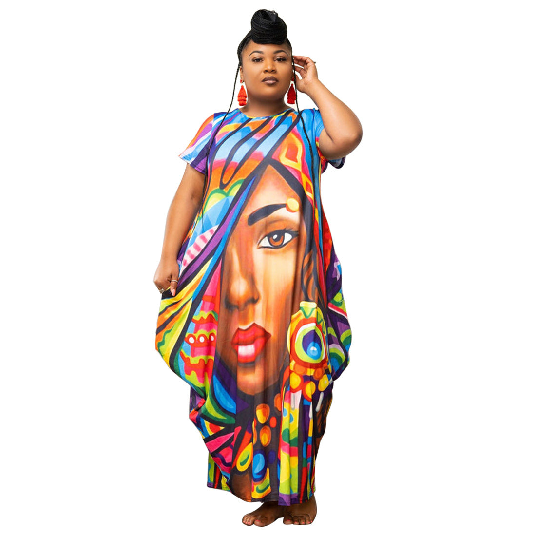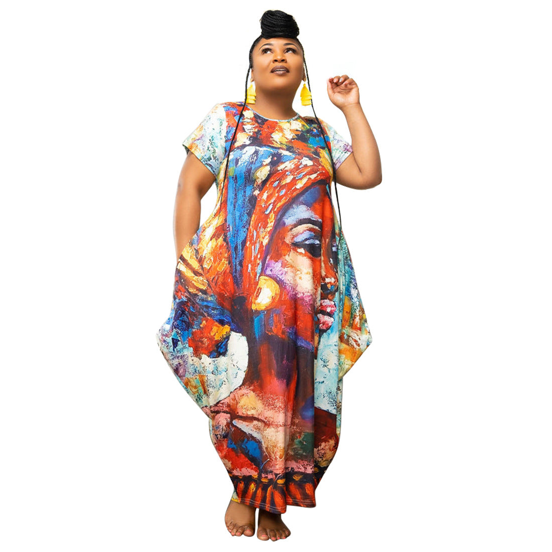 Plus Size Women Clothing Positioning Printing with Pockets Loose Dress for Women
