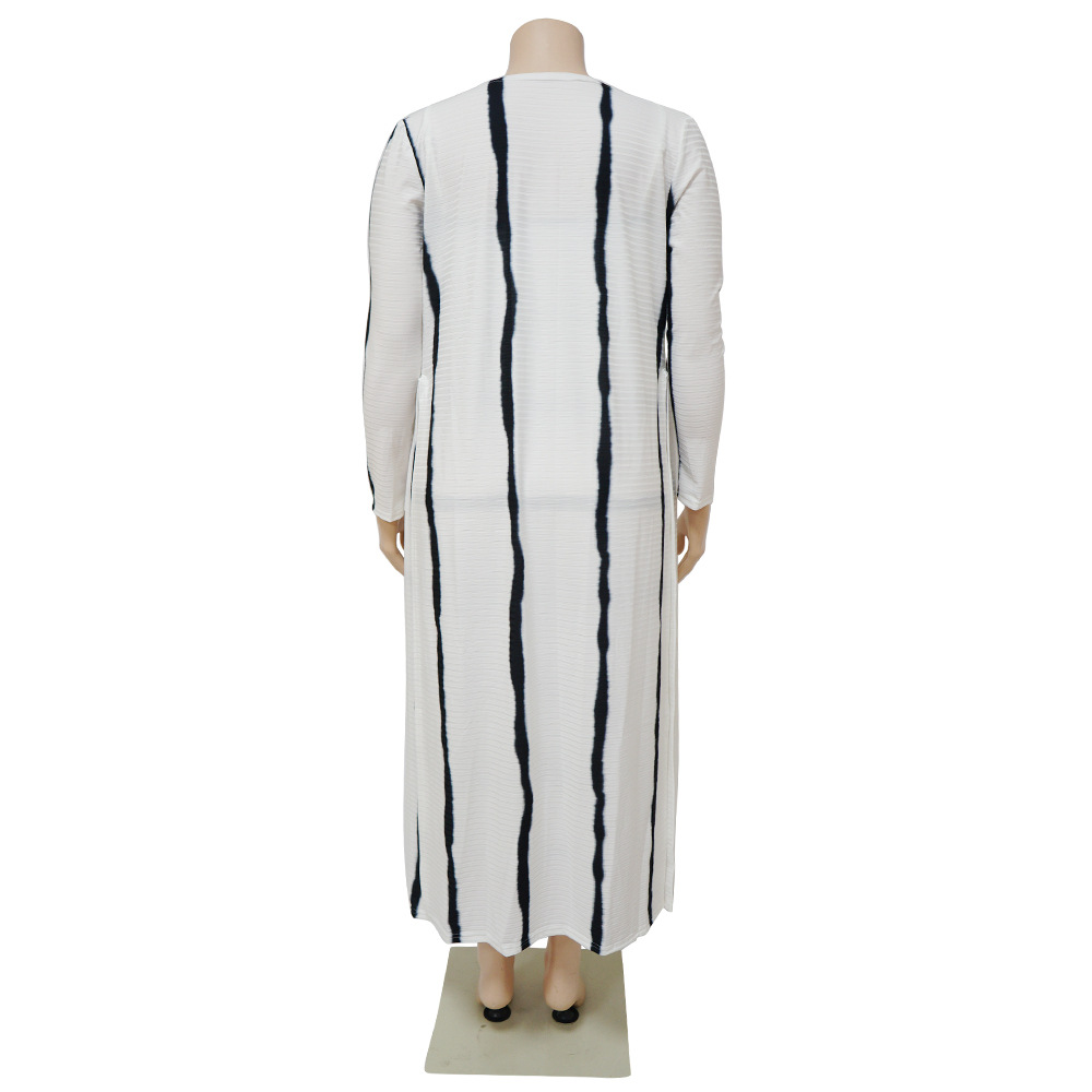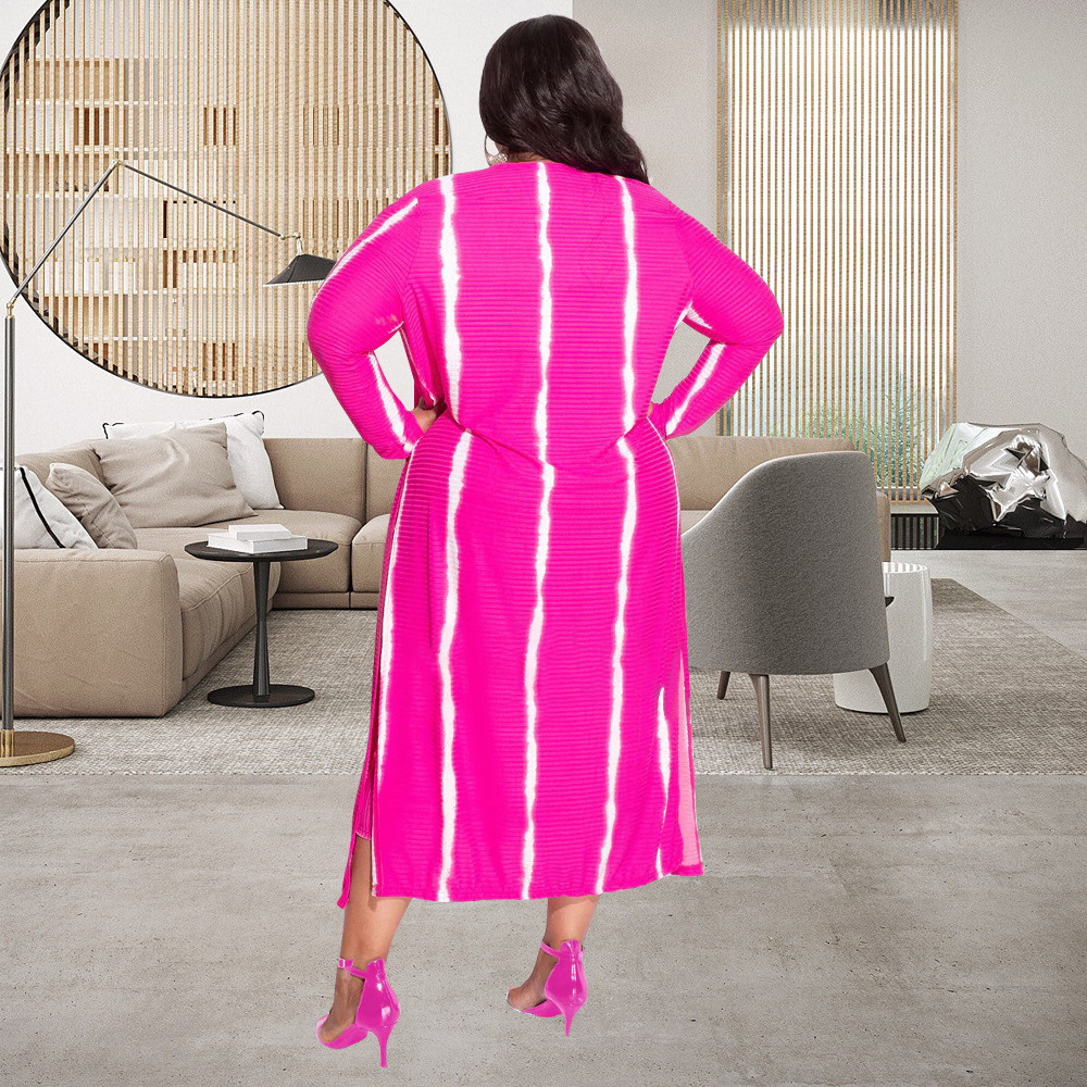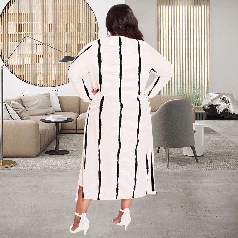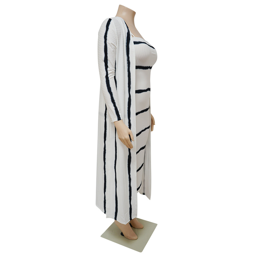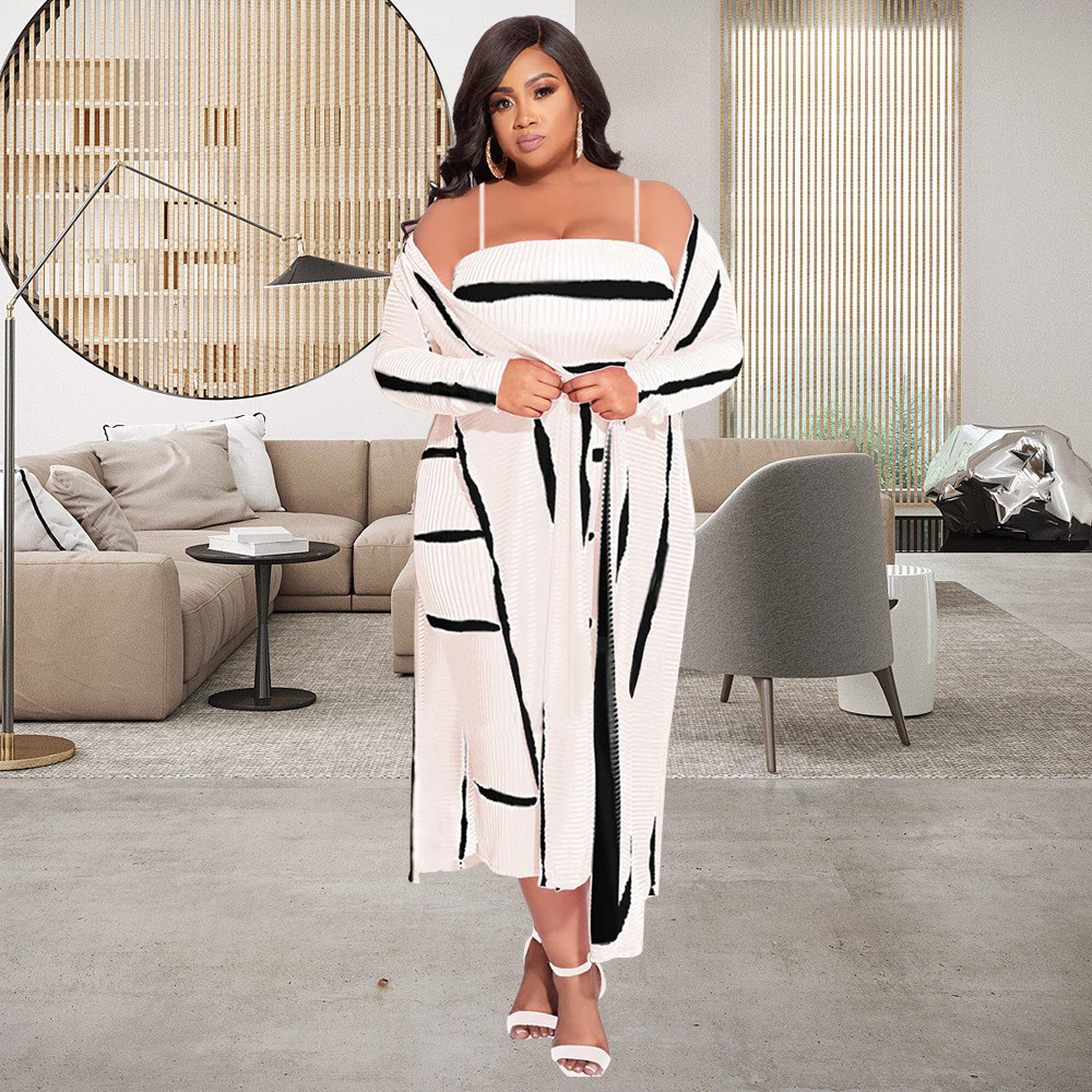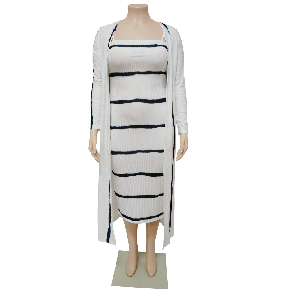 Plus Size Women Clothing Sexy Stripes Printed High Elastic Sunken Stripe Slip Dress Set