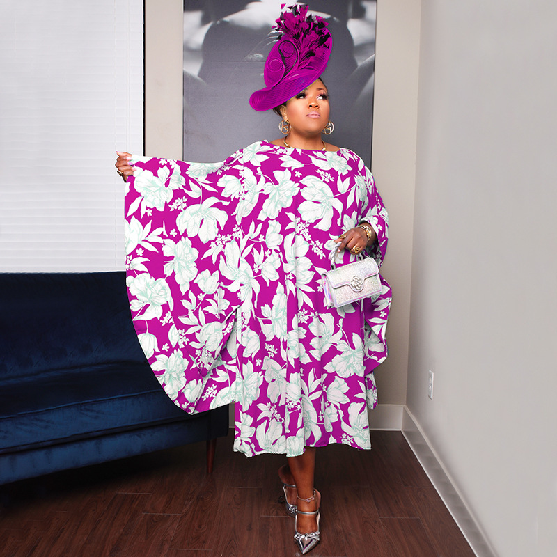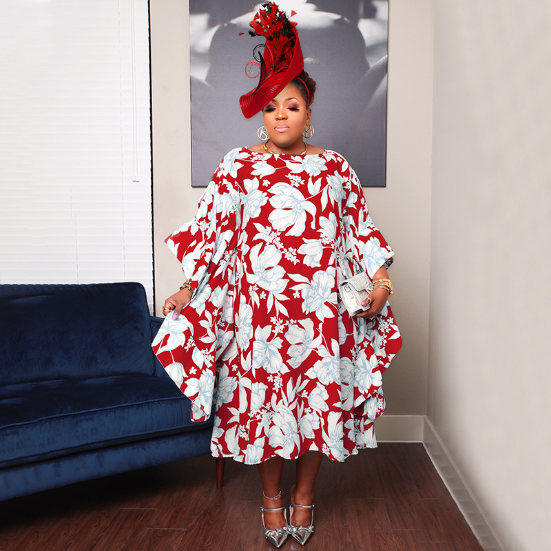Plus Size Women Clothing Split Multi Color Sleeve Dress Loose Nightclub Dress