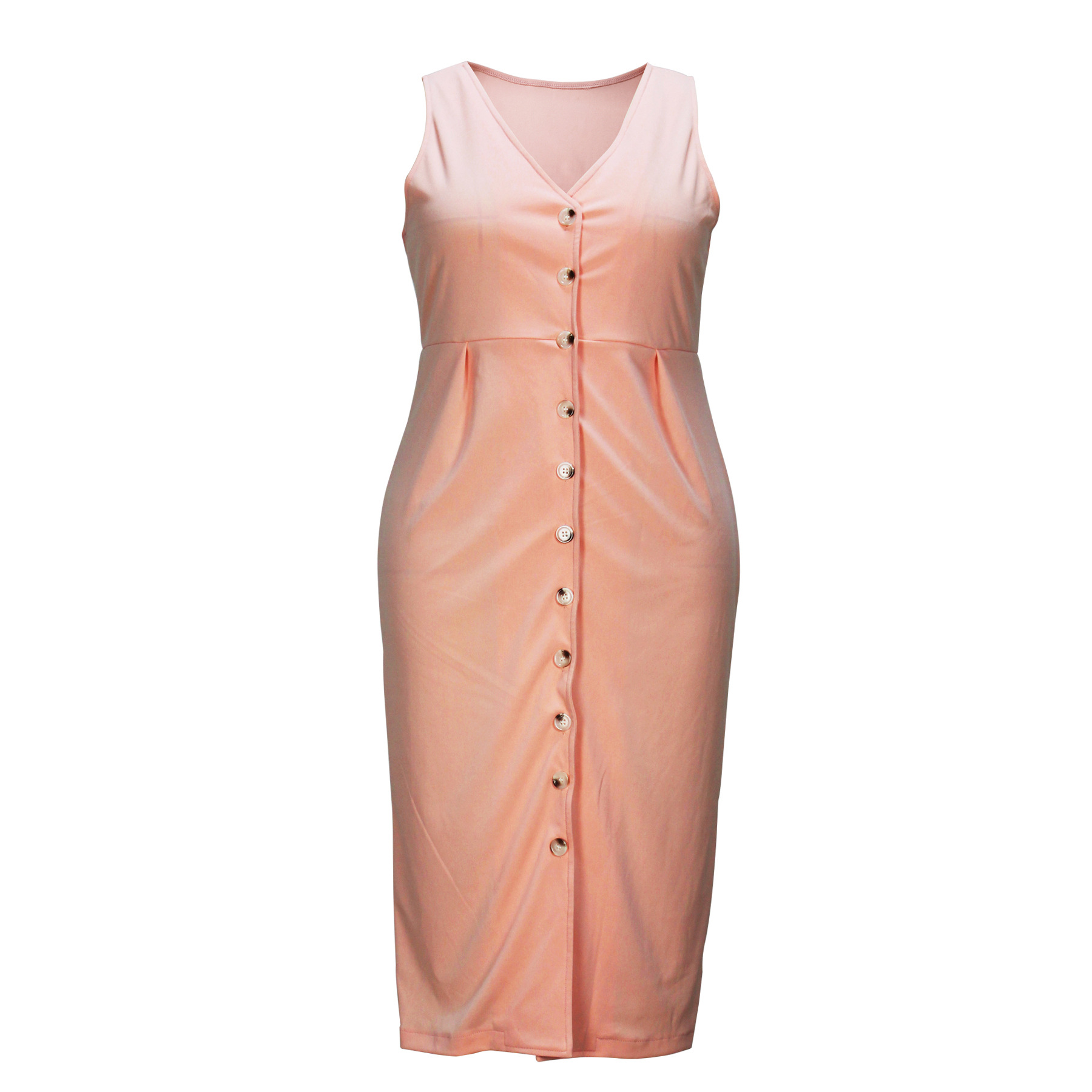Plus Size Women Clothing Spring Summer Elegant V neck Skin Color Solid Color Jumpsuit Sheath Dress