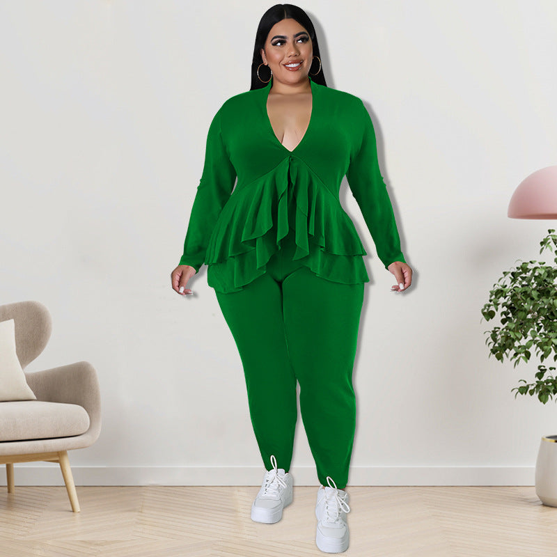 Plus Size Women Clothing Top with Blouse Pants Sets