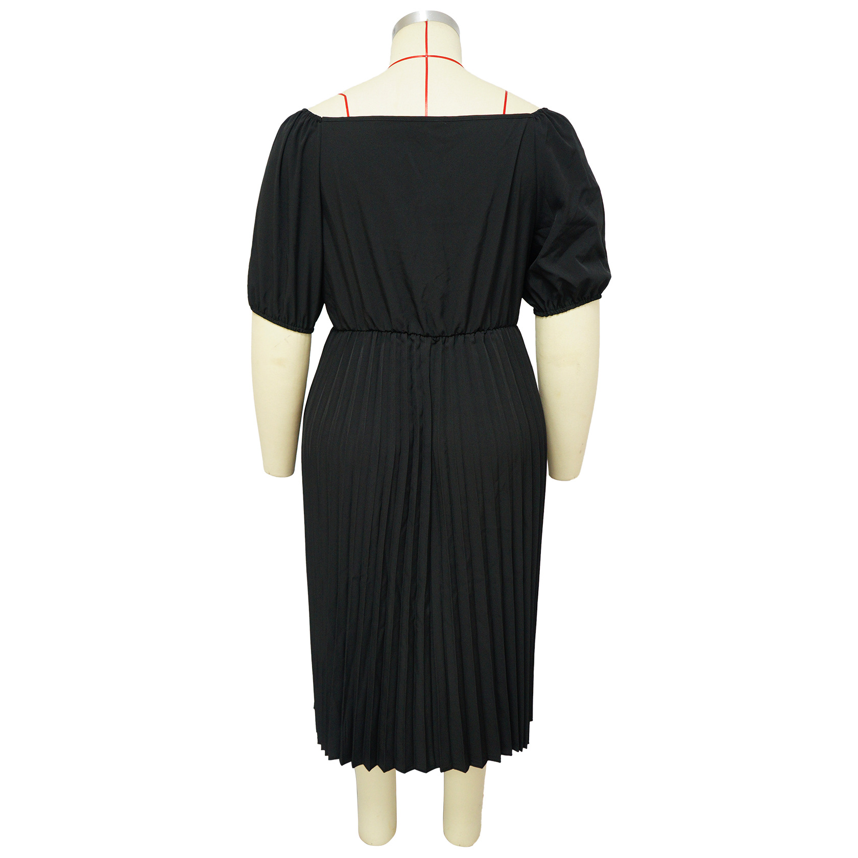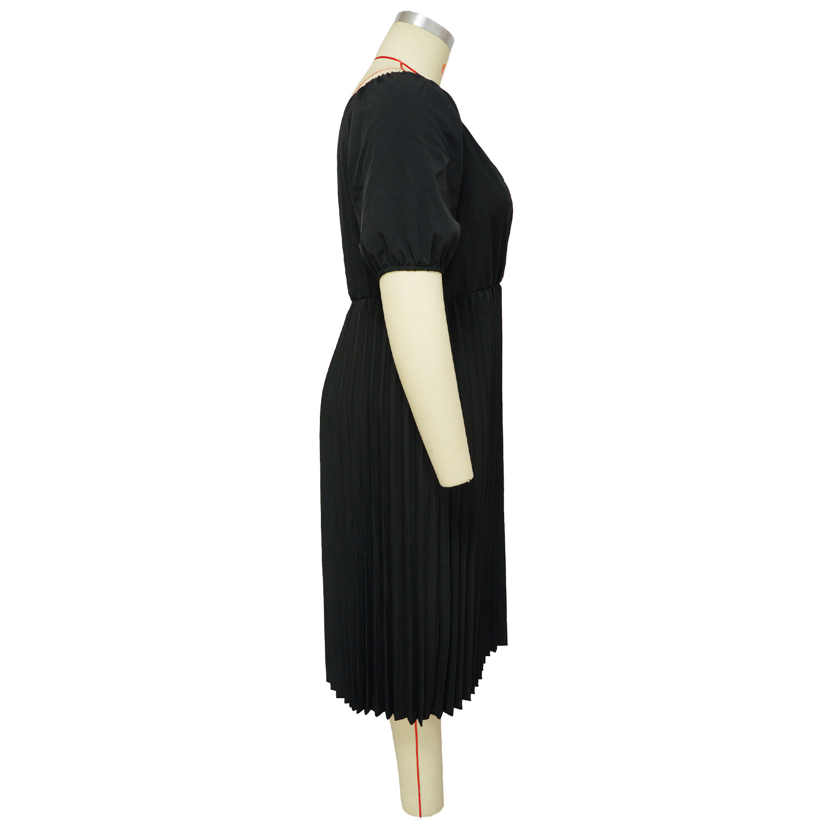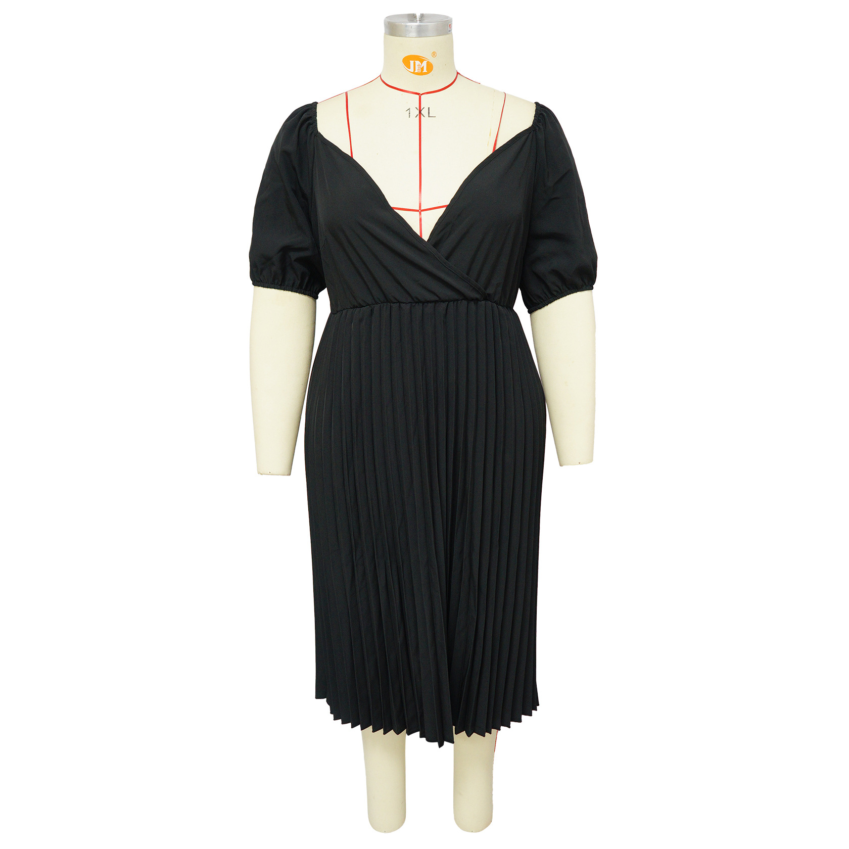 Plus Size Women Clothing V neck Hem Pleated Short Sleeve Dress