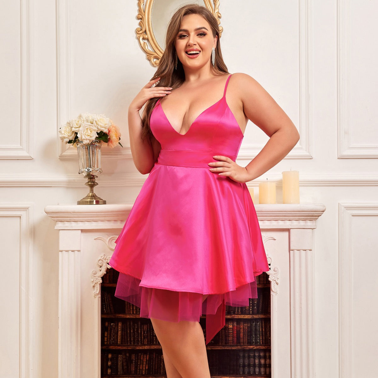 plus Size Women Rose Red Sleeveless Waist Slimming V Neckline Sexy Suspenders Classic High End Dress Puffy dress