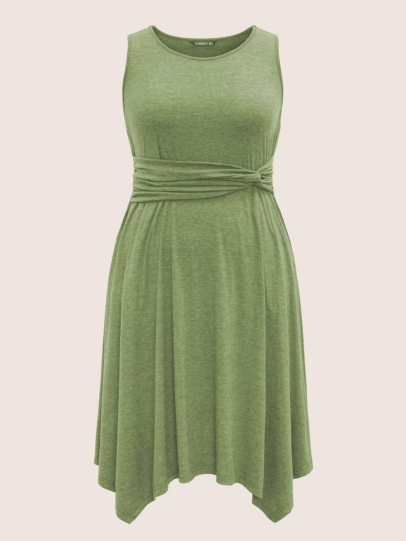 Plus Size Women Round Neck Sleeveless Vest Pocket Solid Color Irregular Asymmetric Dress