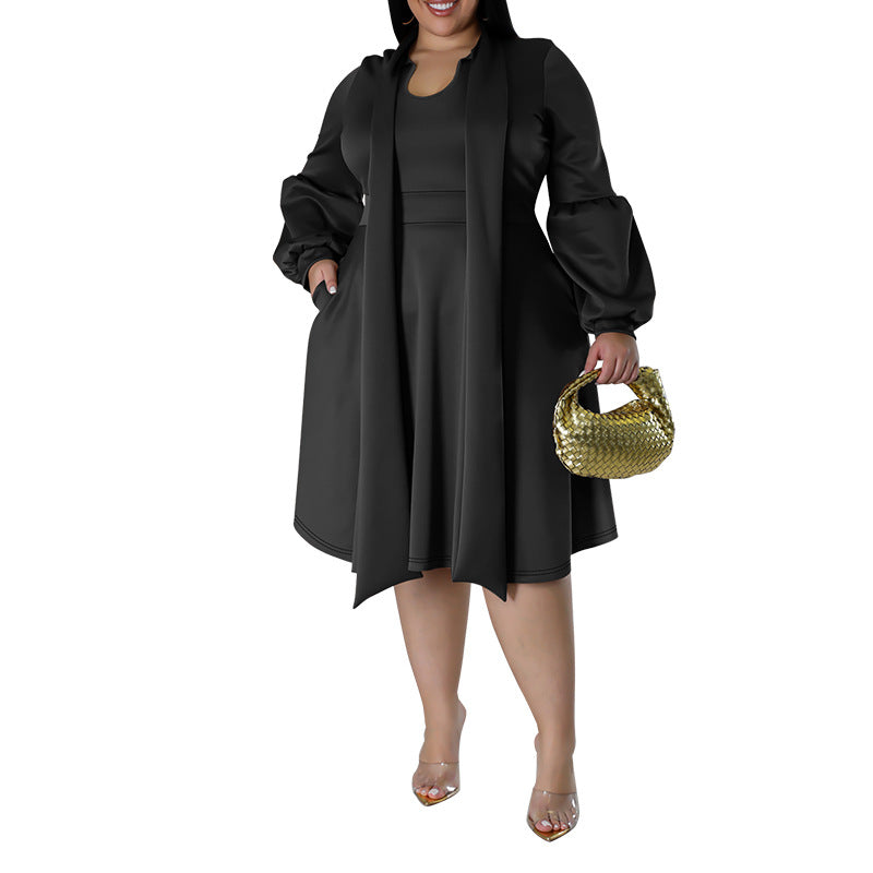 Plus Size Women Scarf Long Sleeved Bubble Sleeve Mid Length Dress