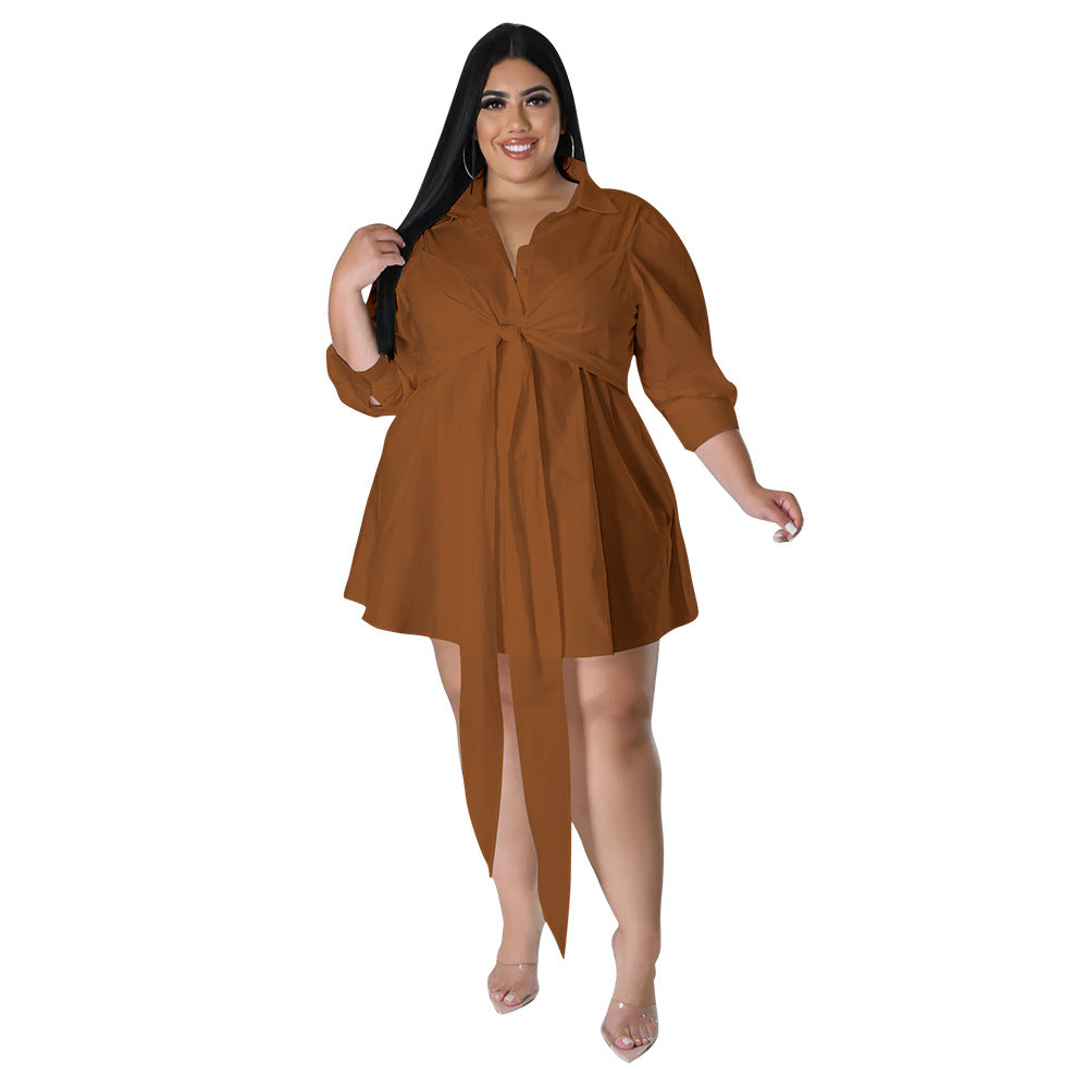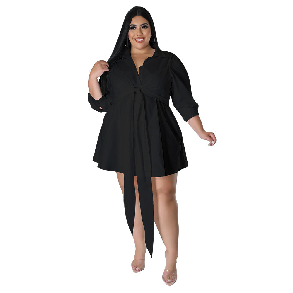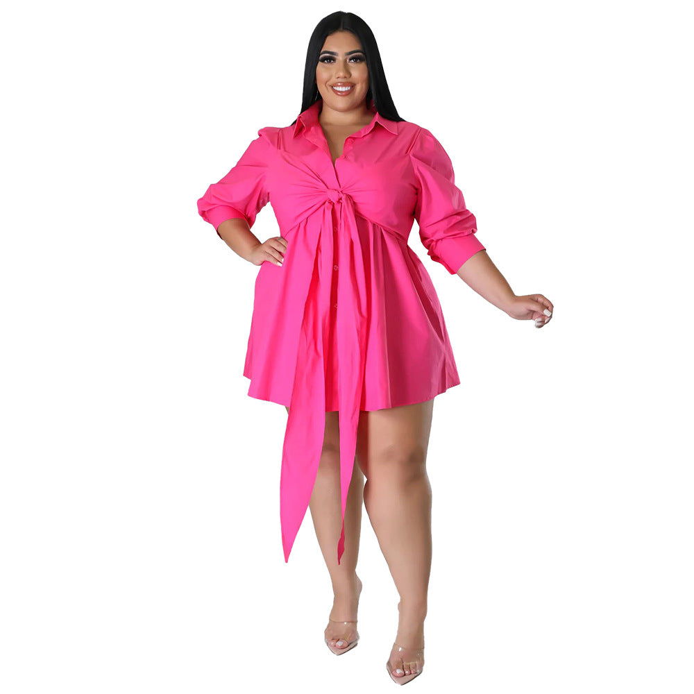 Plus Size Women Sexy Solid Color Tied Shirt Mini Dress