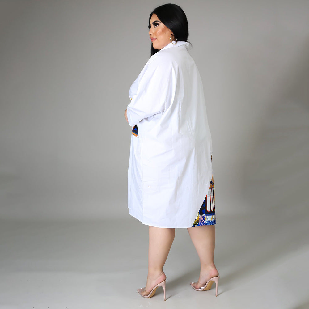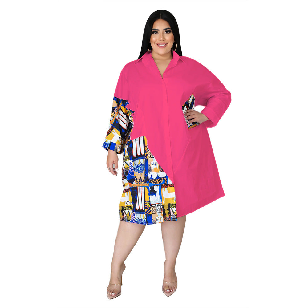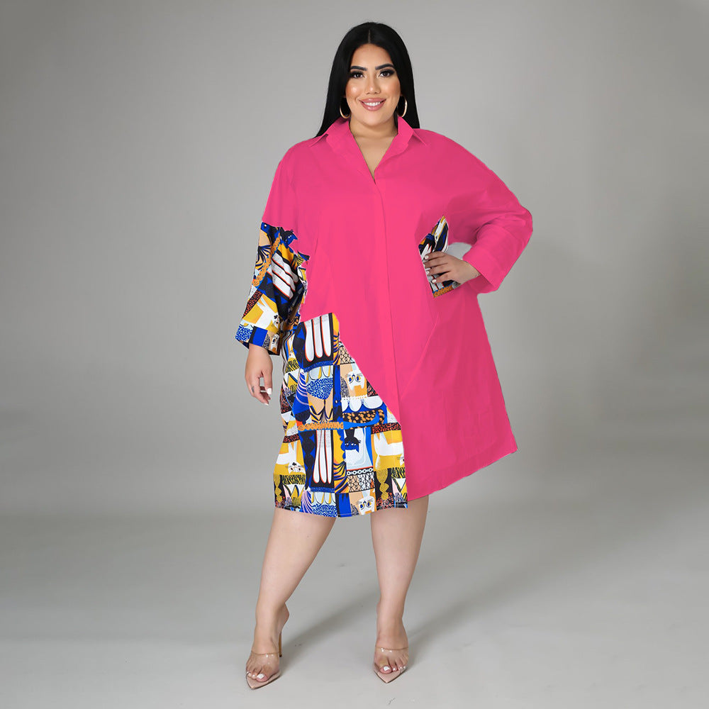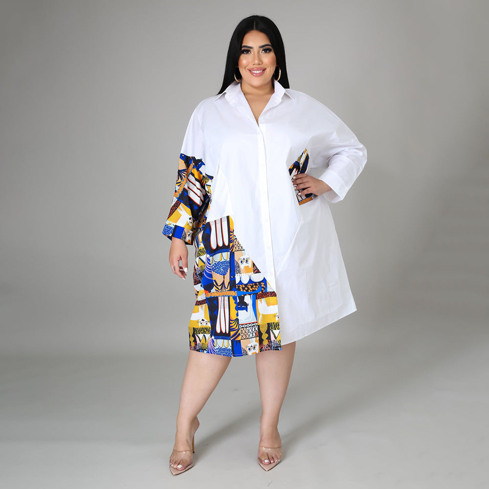 Plus Size Women Shirt Dress Loose Summer Printing Stitching Office Characteristic