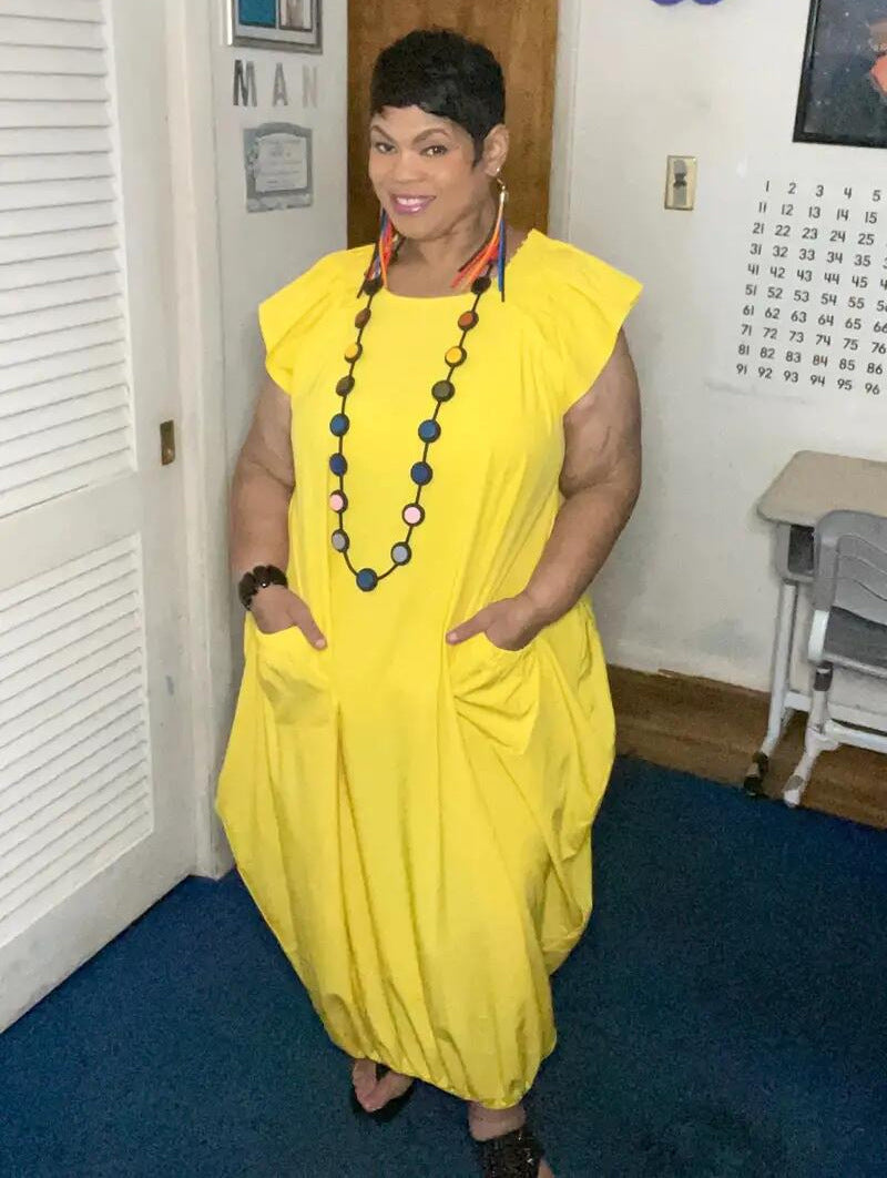 Plus Size Women Solid Color Double Pocket Loose Dress