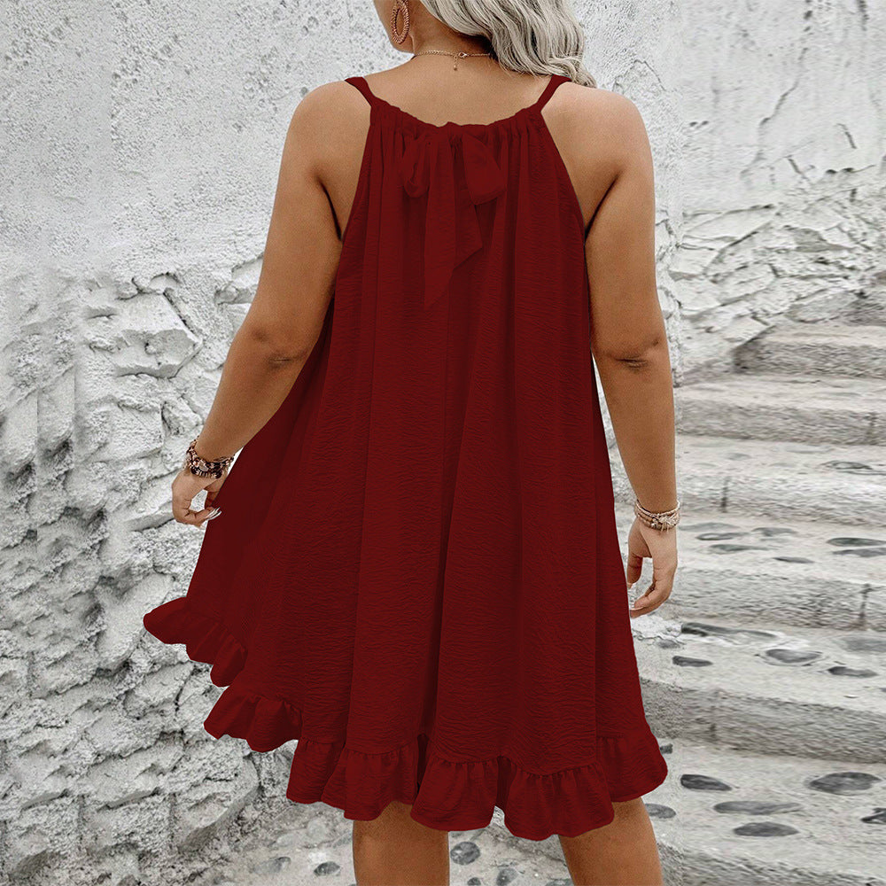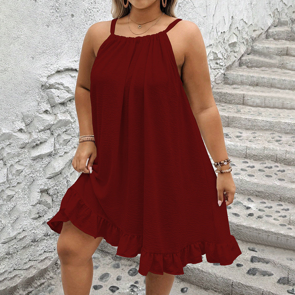 Plus Size Women Solid Color Sun Dress Summer Loose Large Swing Pleated Sexy Dress