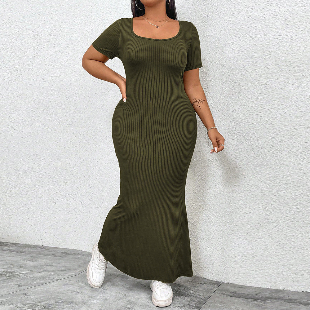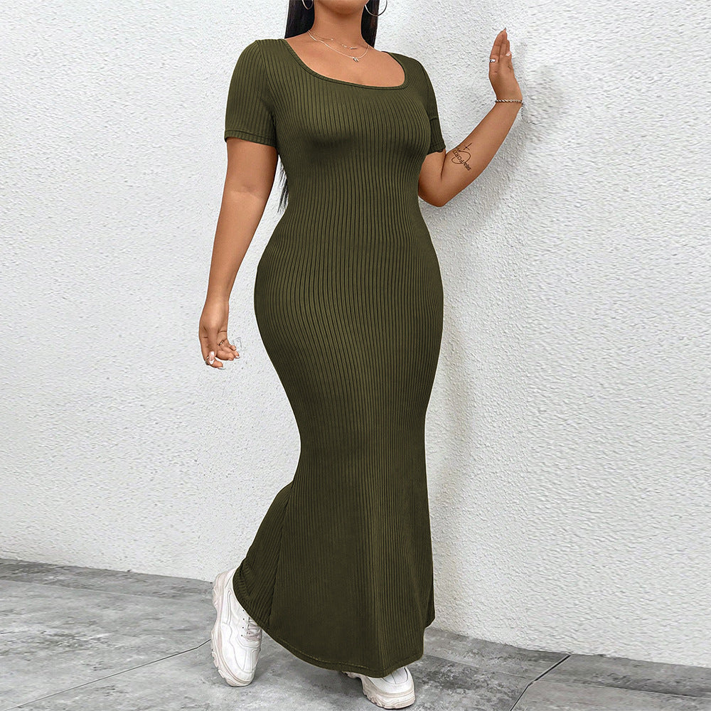Plus Size Women U Neck Backless Design Dress Summer Simplicity Wind To Ankle Dress