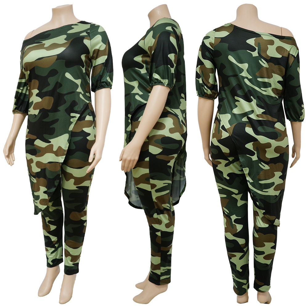 plus Size Women Wear off Shoulder Sexy off Shoulder Printing Two Piece Suit