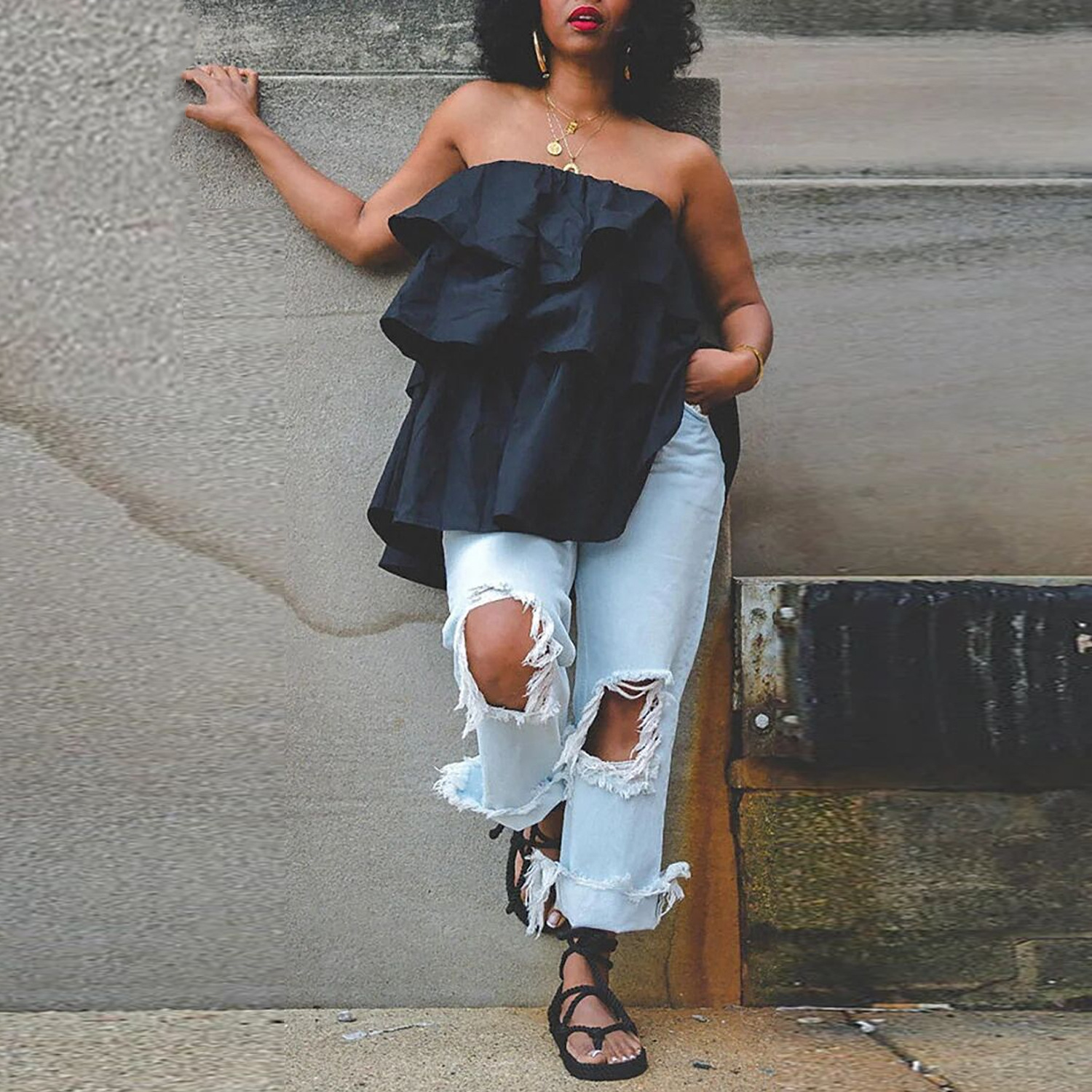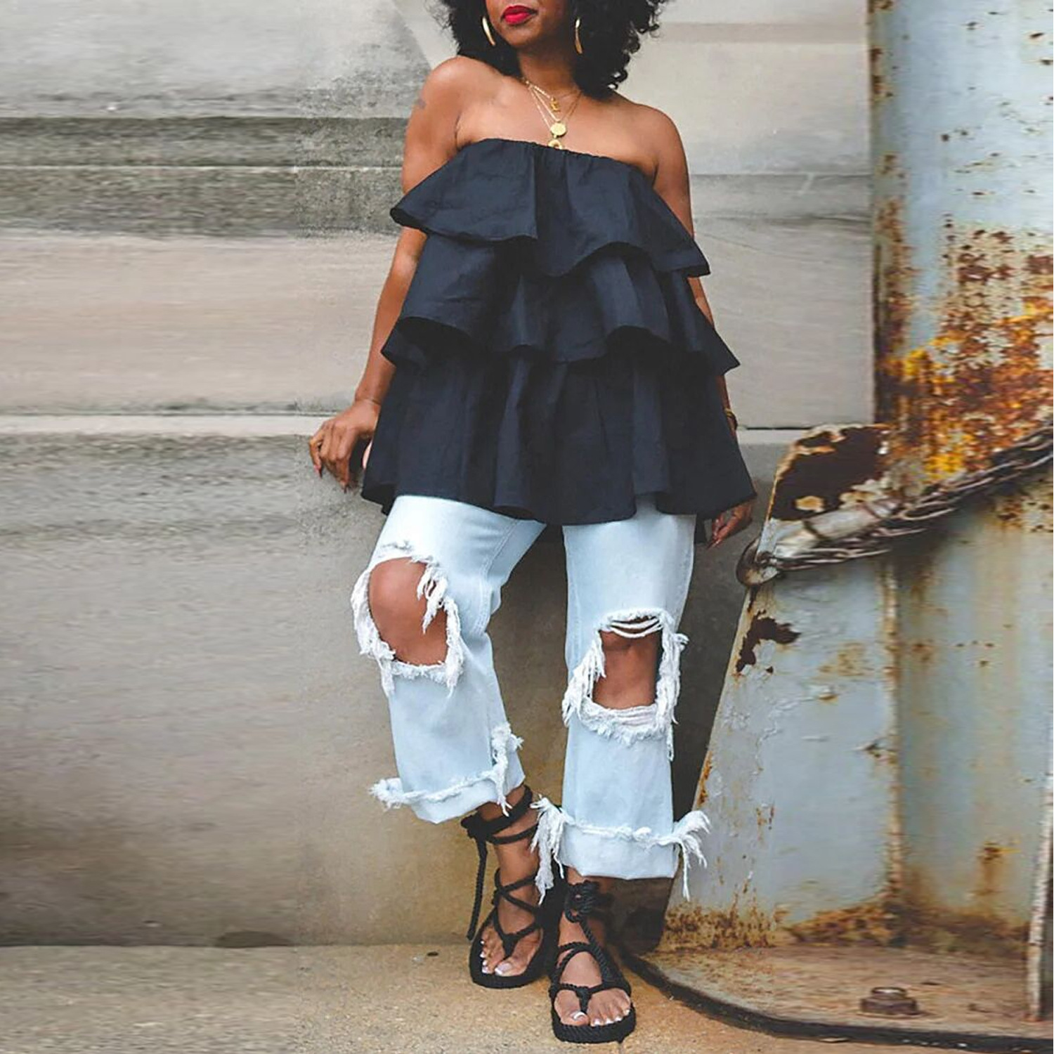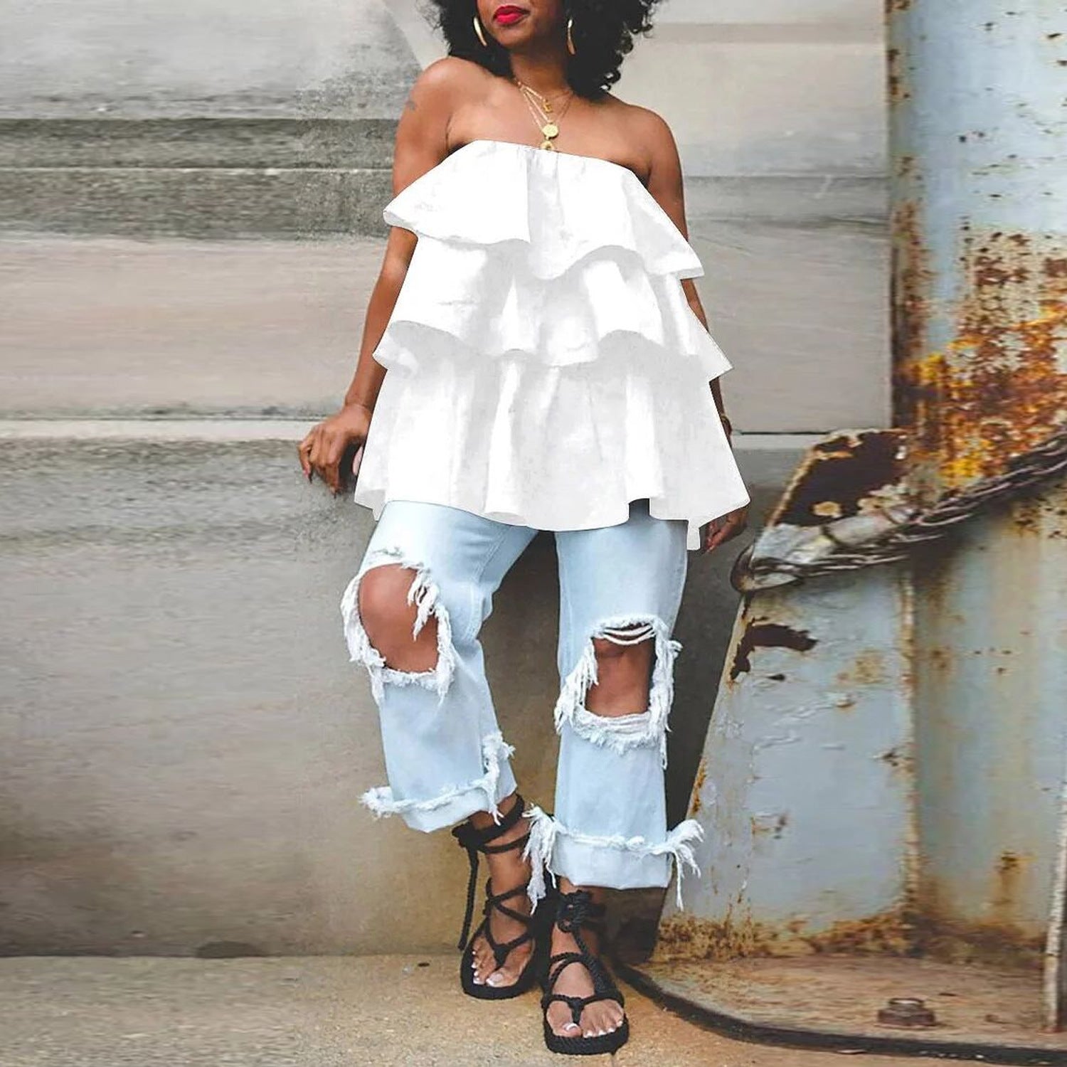 Plus Size Wrapped Chest Ruffled Pettiskirt Tiered Top