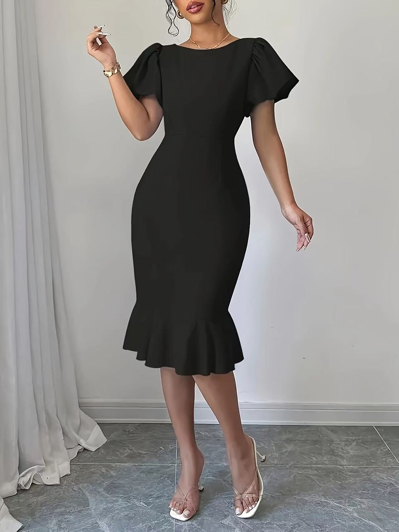 Plus SizeWomen Clothing Fashionable Elegant round Neck Ruffled Hem Mid Length Dress