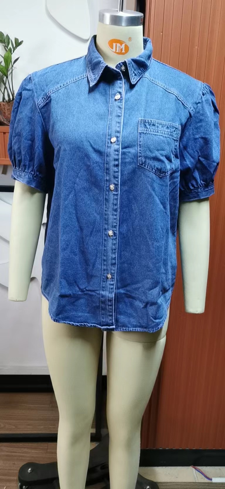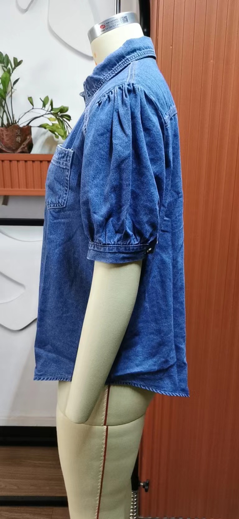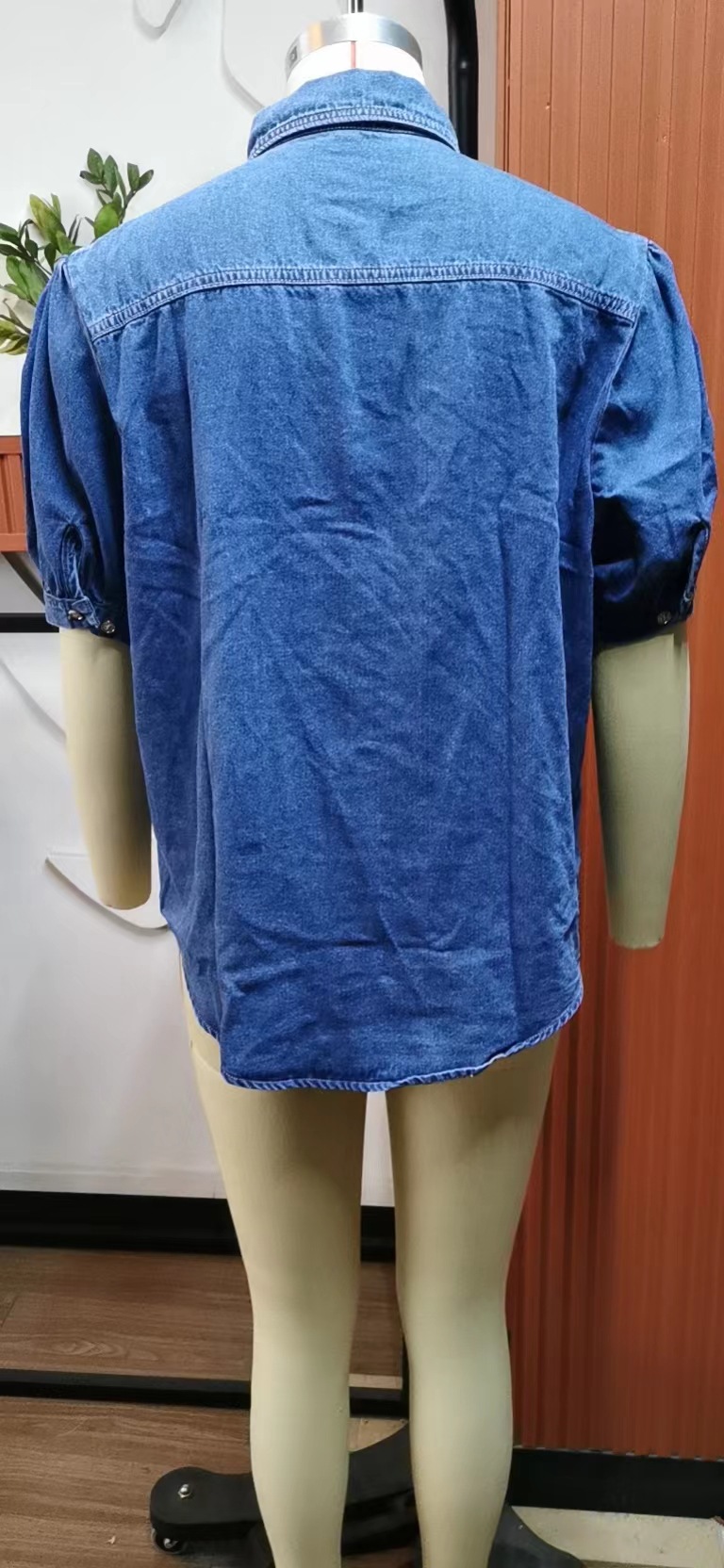 Princess Sleeves Collared Thin Denim Shirt Casual Top Trendy Women