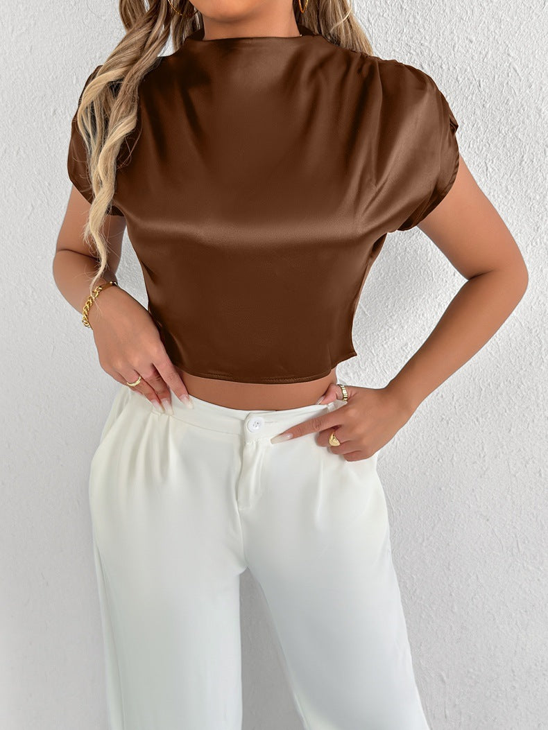 Real Shot Women Clothing High Sense Summer Satin Shirt Satin Shirt Short Sleeve Shirt