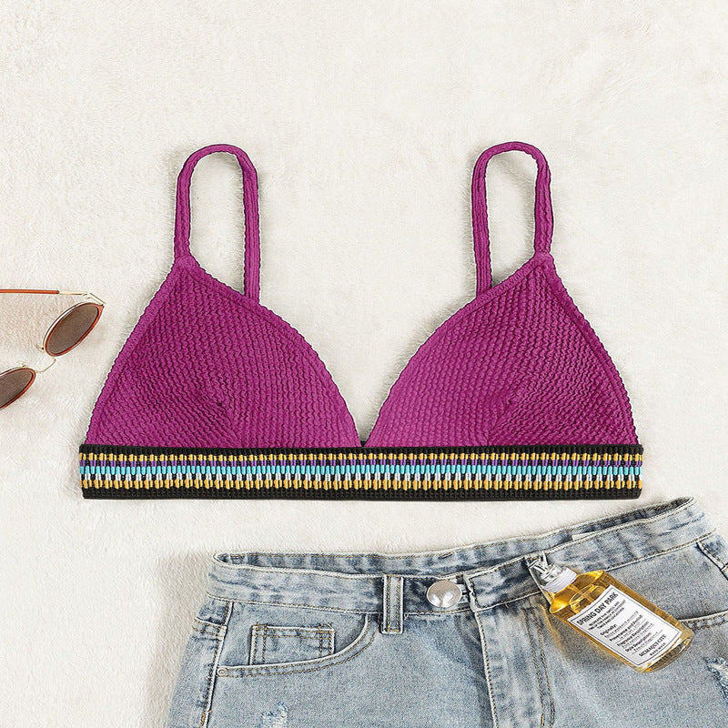 Retro Contrast Color Sexy Backless Spaghetti Straps Bikini Top