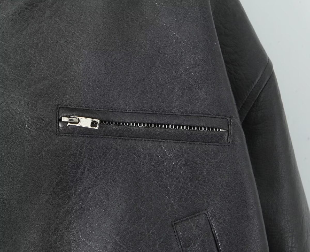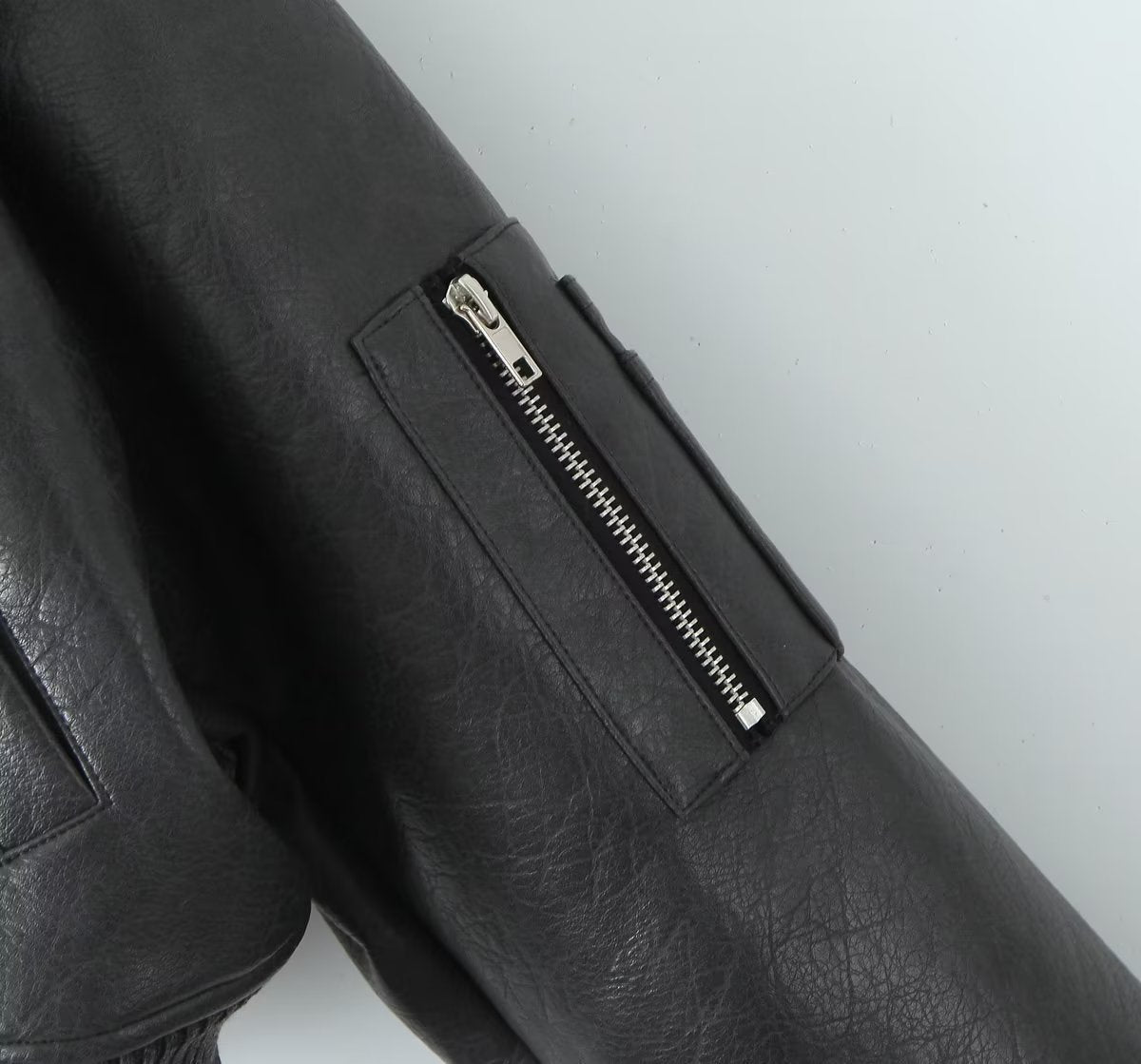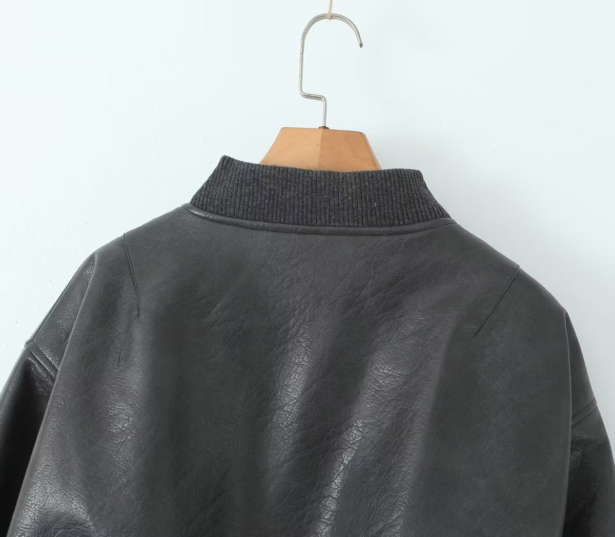 Retro Faux Leather Cotton Jacket Coat for Women Autumn Winter Sexy Stand Collar Zipper Short Varsity Jacket