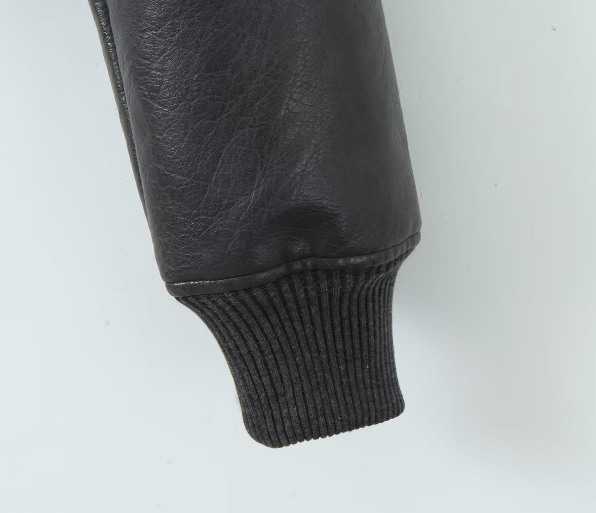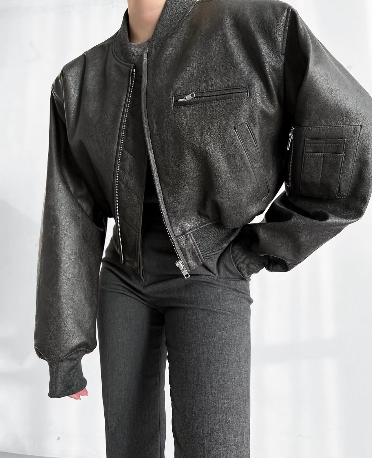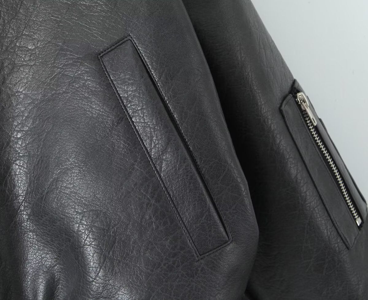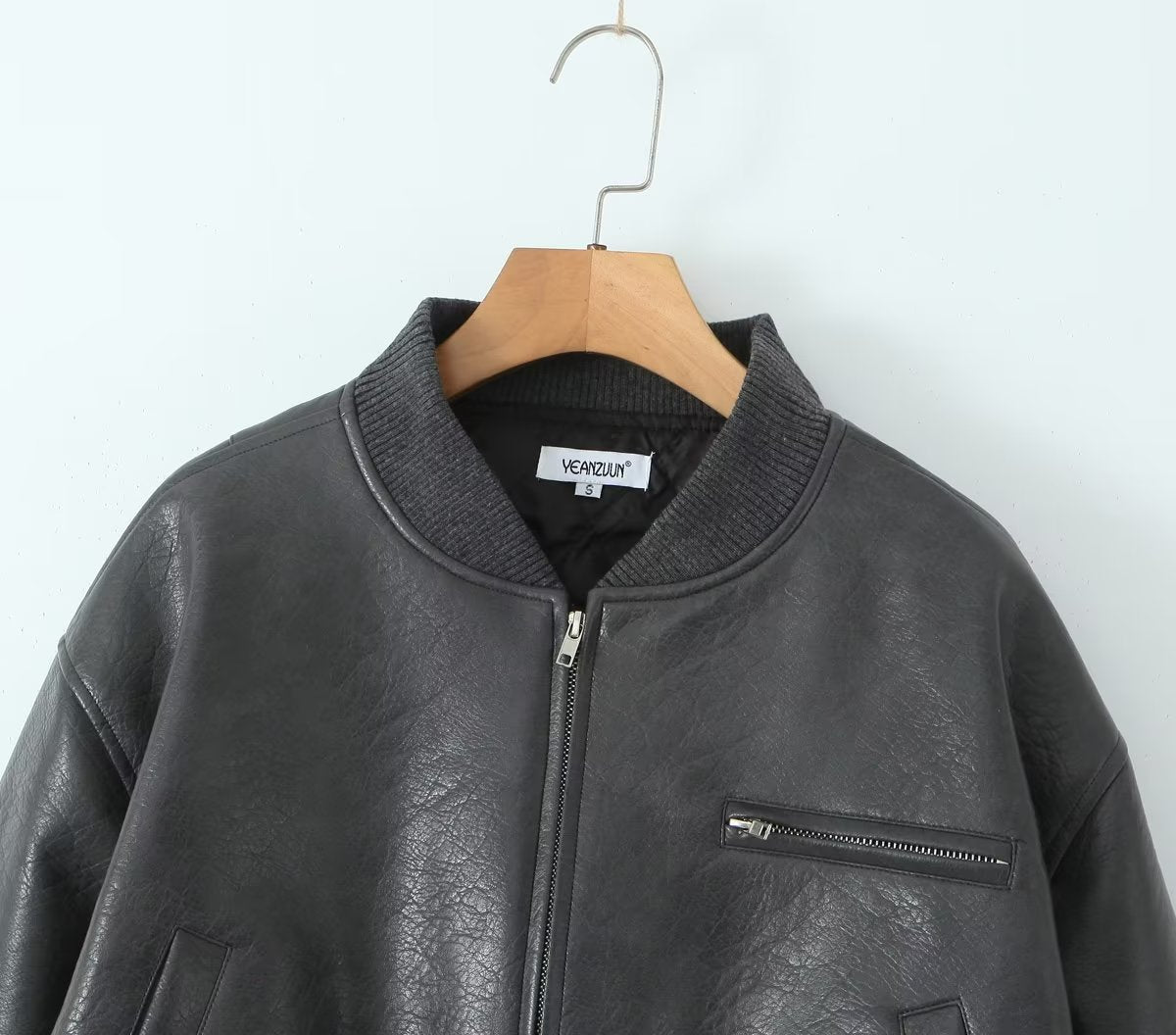 Retro Faux Leather Cotton Jacket Coat for Women Autumn Winter Sexy Stand Collar Zipper Short Varsity Jacket