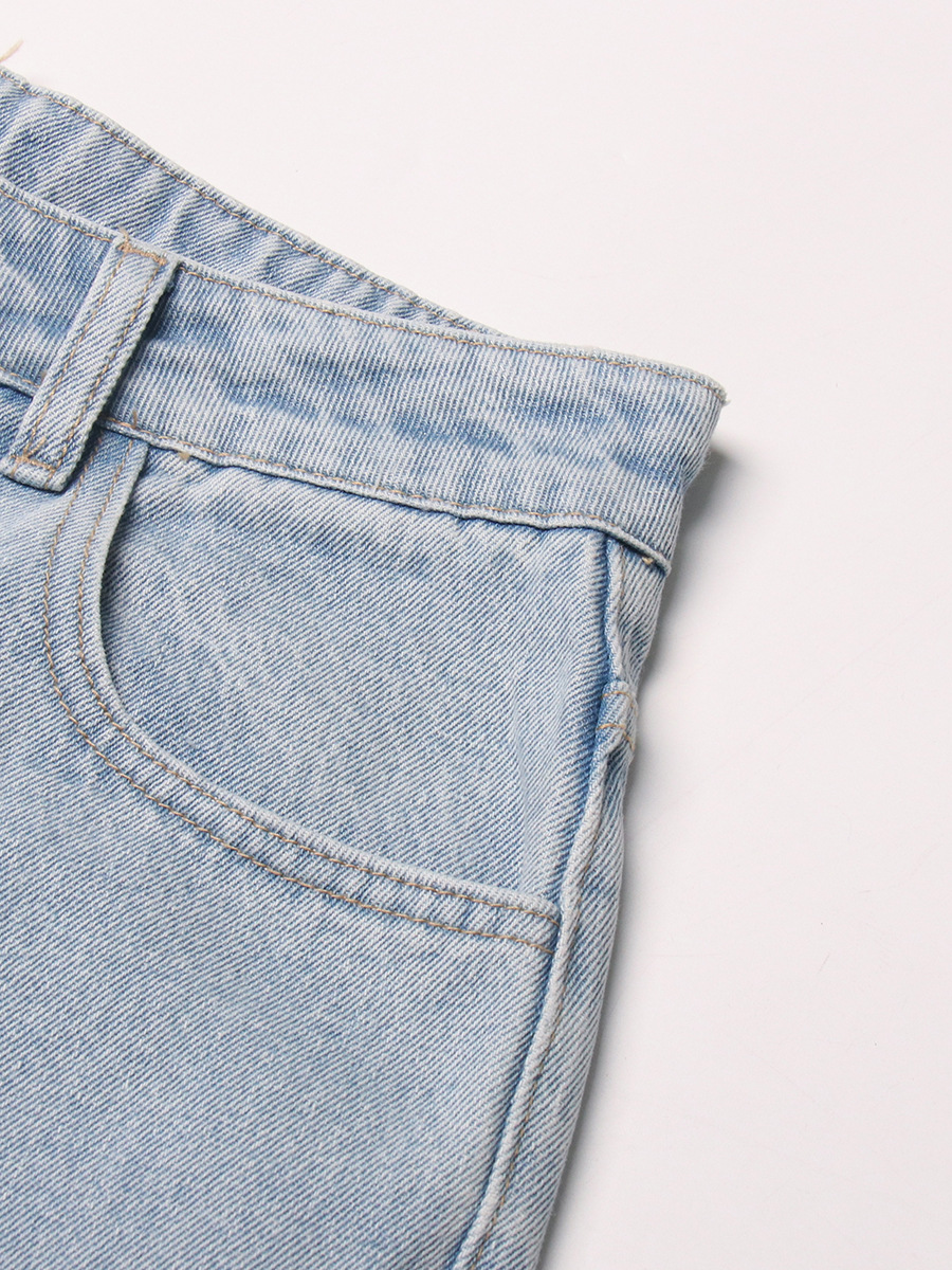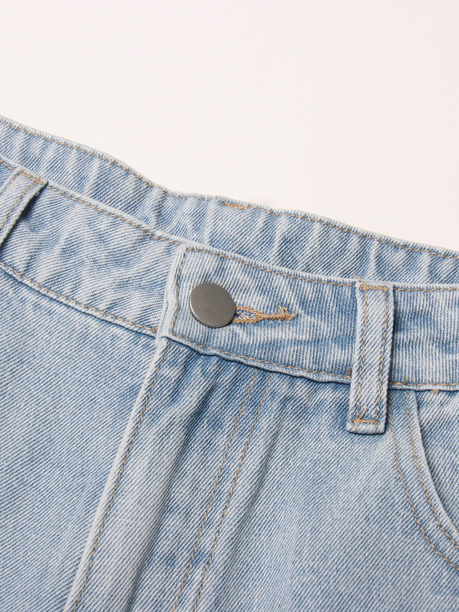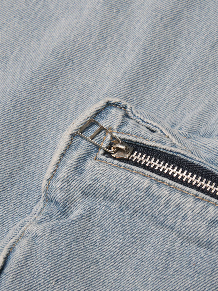 Retro Light Blue Washed High Waist Cargo Jeans Women Autumn Winter Zipper Large Pocket Trousers