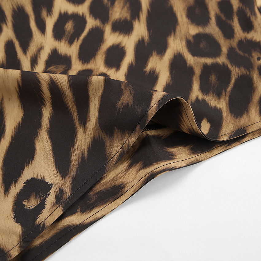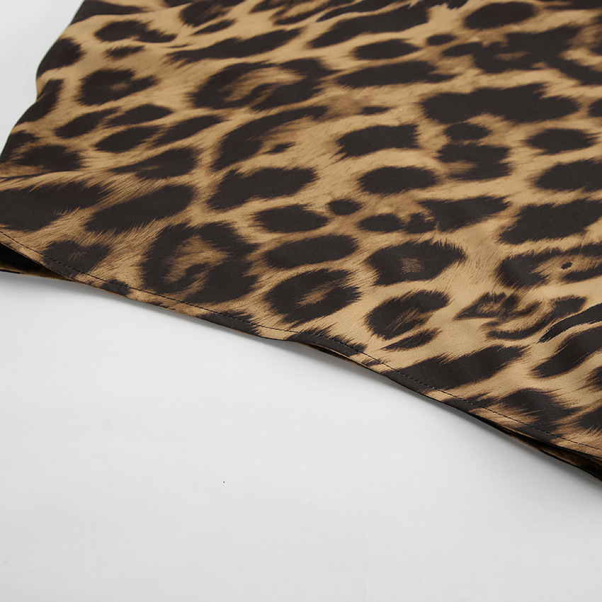 Retro Summer Classic Leopard Pattern Mid Waist Floor Skirt Slim Fishtail Skirt Women Clothing