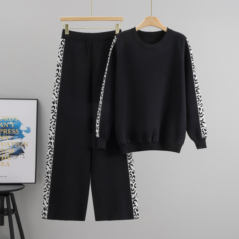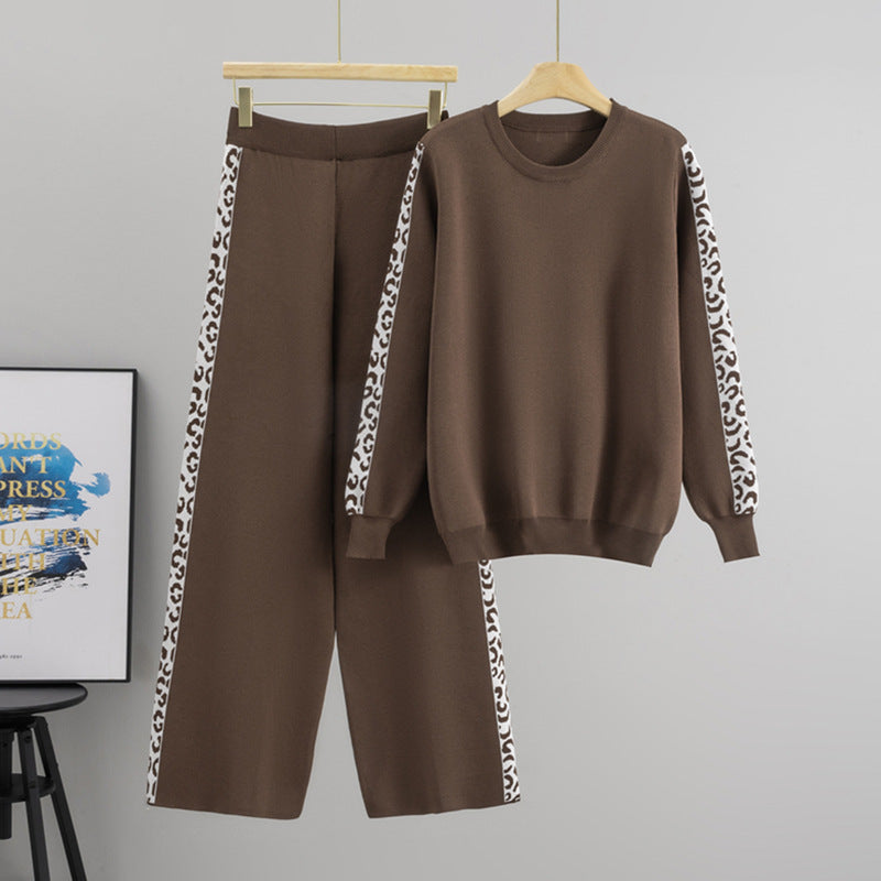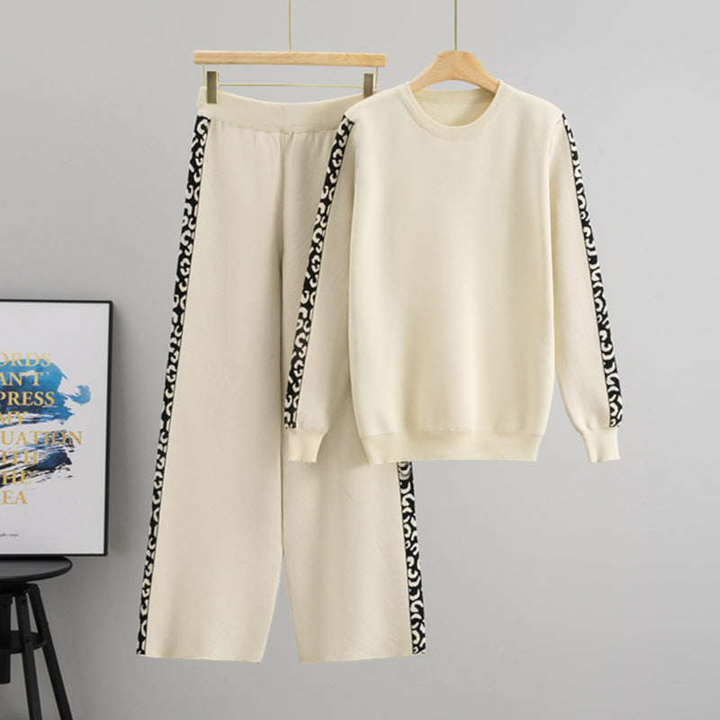 Round Neck Knit Casual Two-Piece Loose Long Sleeve Two Piece Sets