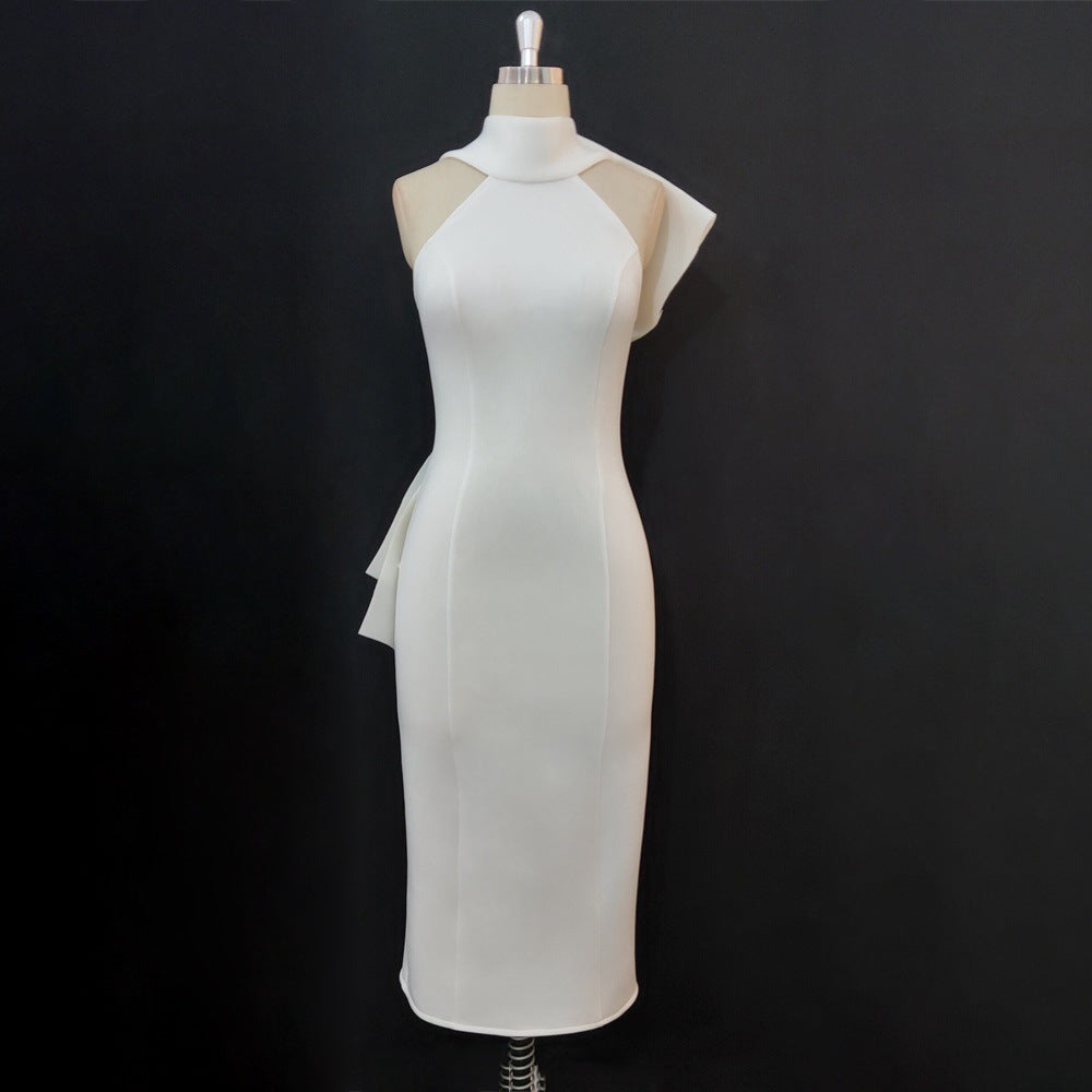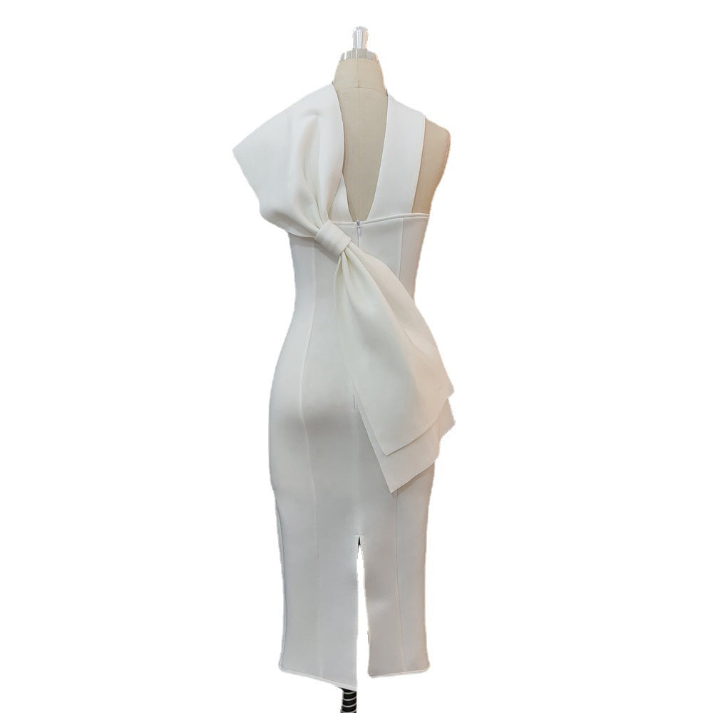 Sexy Neck Holding Backless Bow Slit High Waist Plus Size Sleeveless High Elastic Party Dress Women Dress