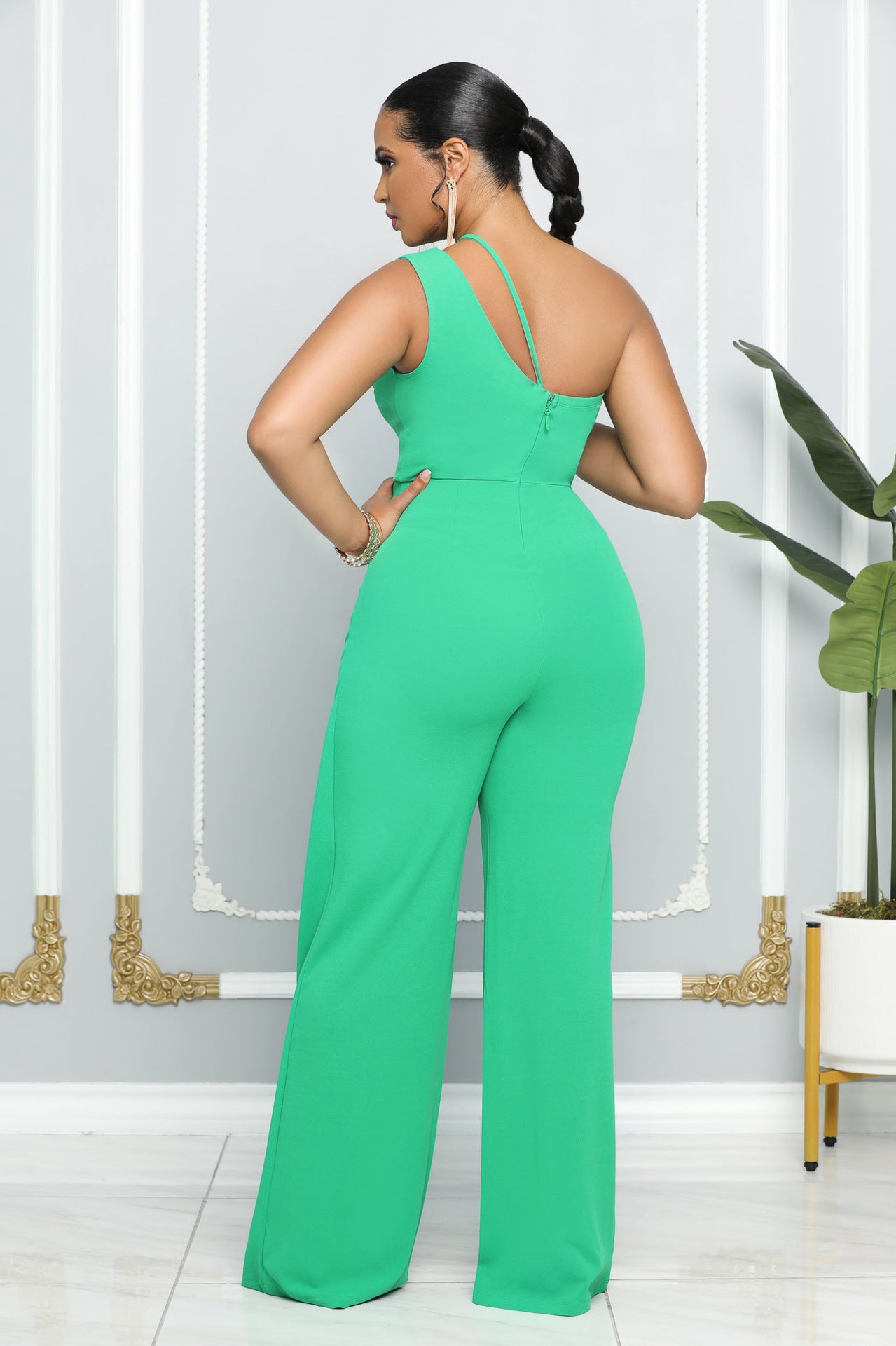 Sexy Sleeveless Single Shoulder Suspender High Waist Office Straight Jumpsuit