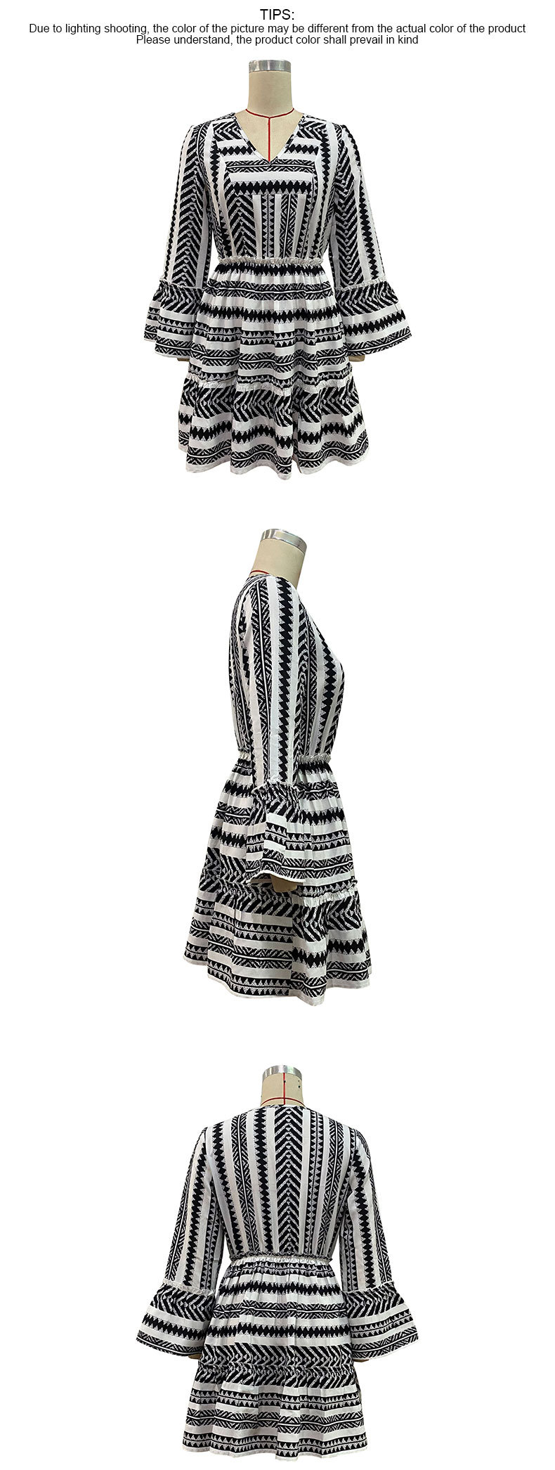 Short Women Autumn Winter Long Sleeve Printed Dress