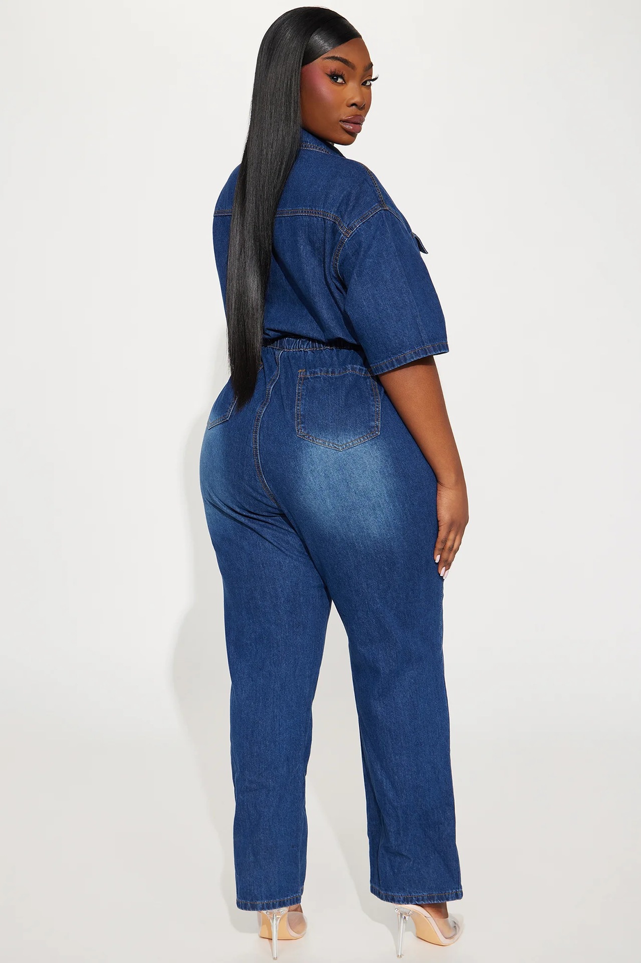 Slim Fit Stretch Short Sleeved Ankle Wash Denim Jumpsuit Jumpsuit